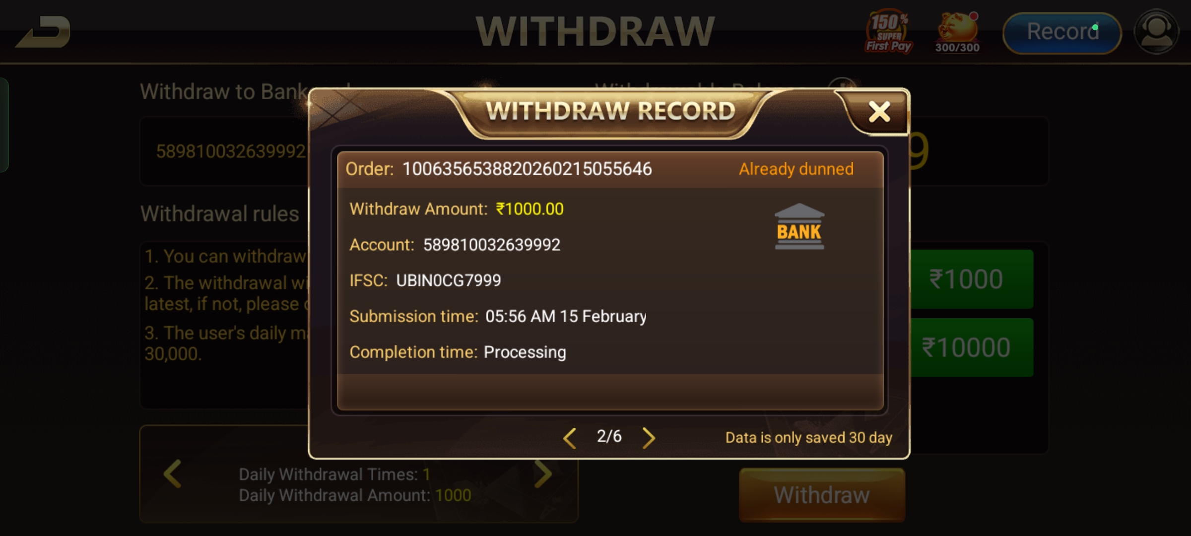 I download a game turbo teen patti game from Google play and played won nearly 20k but withdrawal amount not credited in my bank account please give me amount