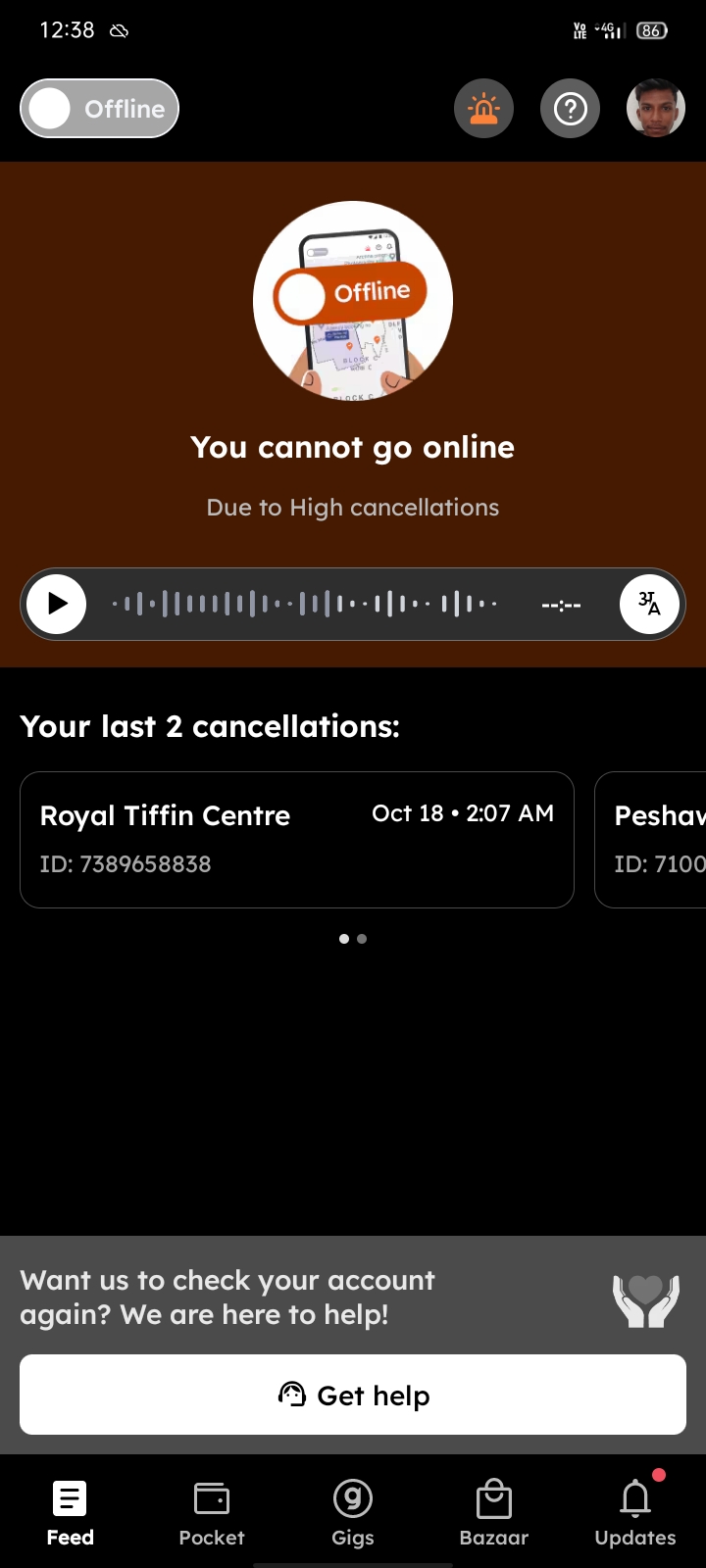 Some reasons I have not delivered order thats why they are blocked my zomato id