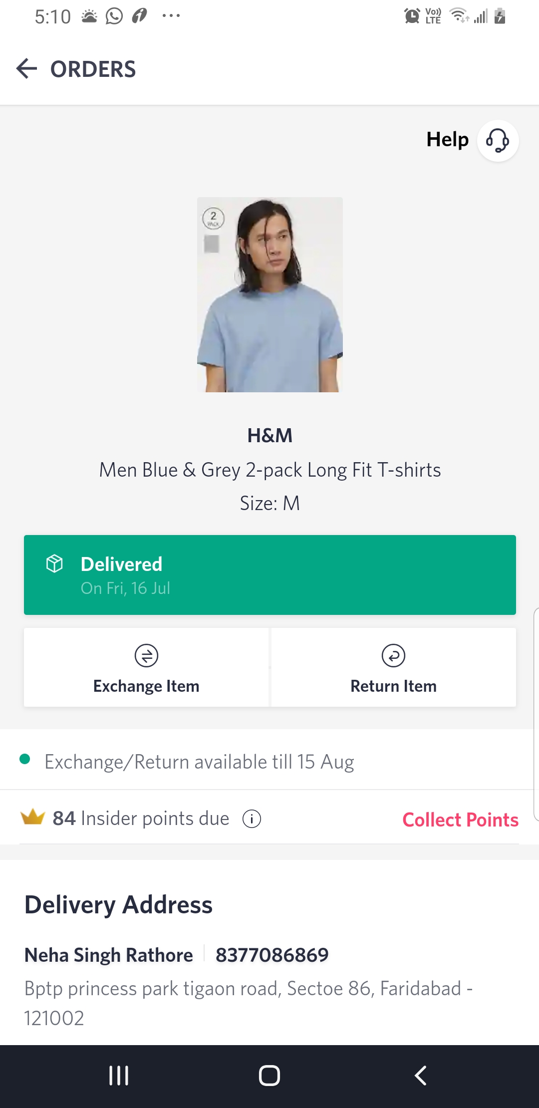 I order H&M men’s 2 t-shirt set, when a delivery boy came to deliver the product that day I was not available at home and I told him to come on Sunday (18-07-2021) but delivery boy told me that he will keep the product with him and deliver it to you on Sunday but he never came back to us and the delivery status in Myntra app was showing that it was delivered on 16 of july, 2021.