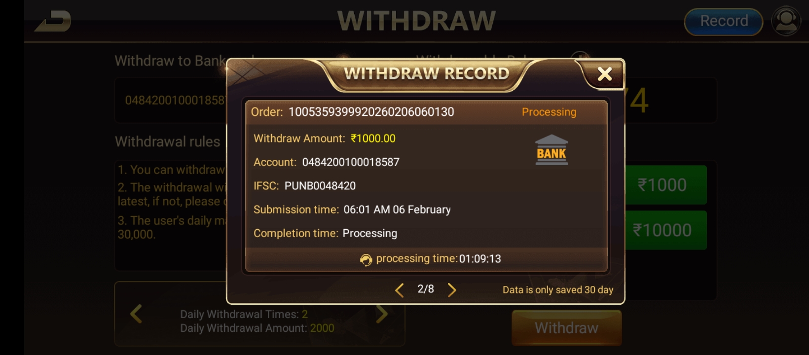 I am play namaste teen patti card game, i will deposit 10000 rupees, and will win 28000 rupees in this application, first 3 days i will withdrawal 2000 rupees daily, but now 2 days i have sent 4 withdrawal request in 4000 rupees but last48 this application show me this,( already dunned) this application is fraud with me and other customer, please help me to give me my money back………