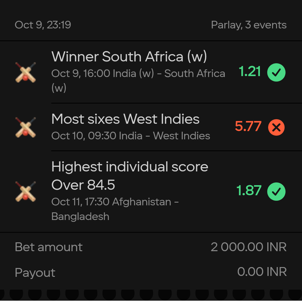 Hi Team, I have bet on 2nd test match between Ind vs WI on Parimatch bet online (I have bet on most sixes by WI)