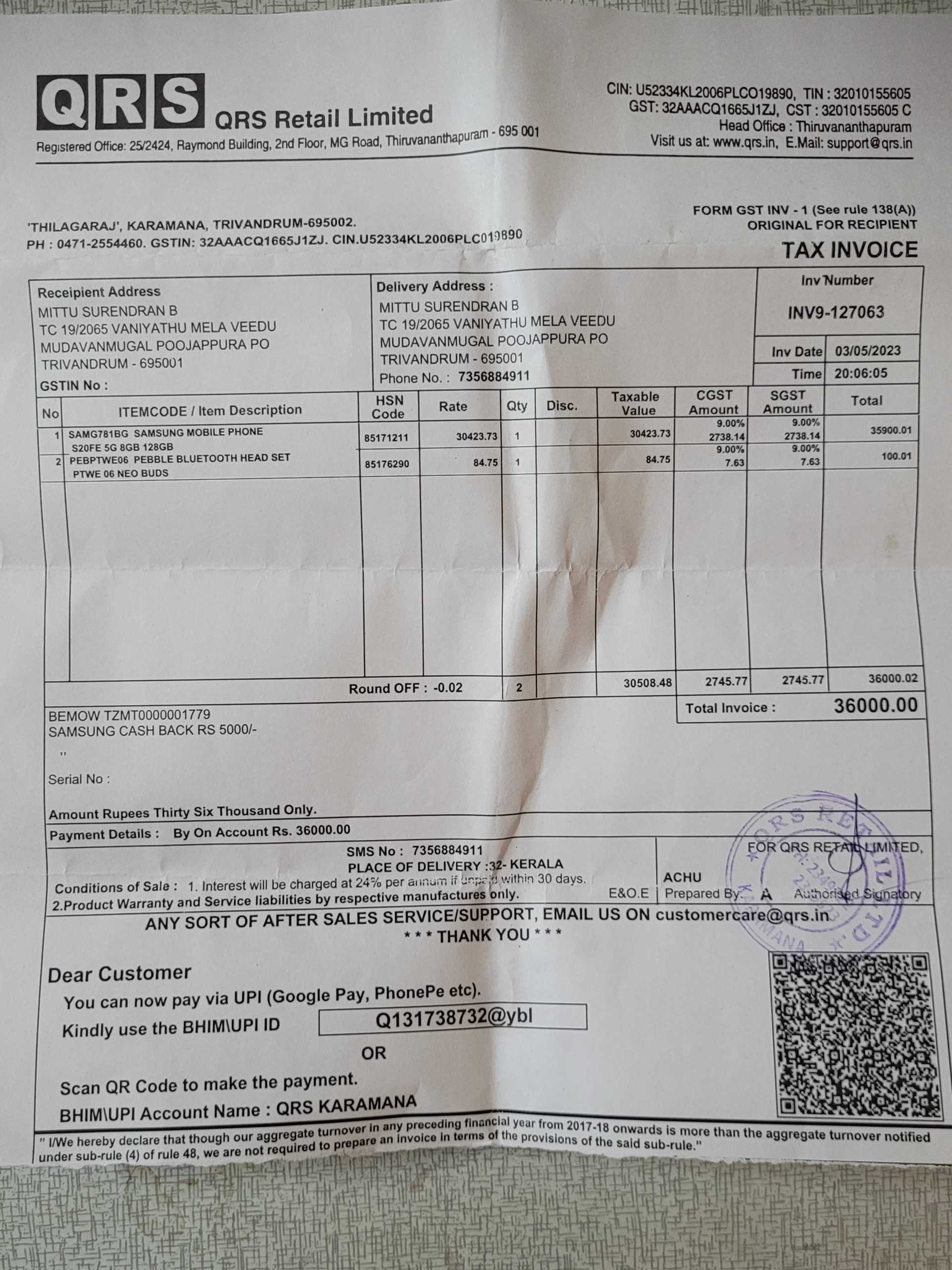 | Name(s) of companies complained against | QRS Thiruvananthapuram |