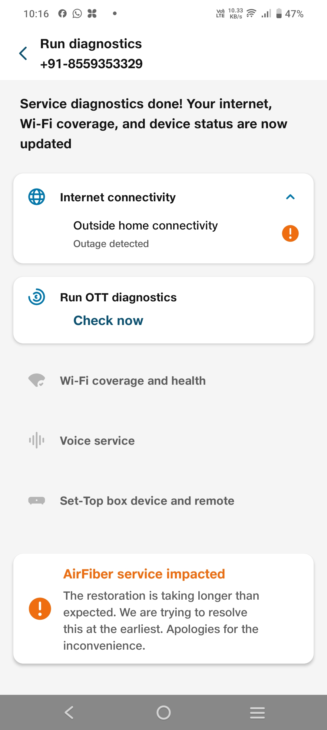 My JioFiber account has been facing network issues for the past 30 days. Despite multiple attempts to resolve the problem, the issue persists.