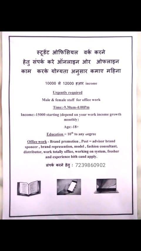 I have receive a pamphlet on whatsapp that offering me a job of office work and I have contact to them for a job. Next day they call me to register this company and also have to pay 500rs and they will provide me a training that explain me how to work on this company after my training they give me greed that you will give lacs of rupees per month on joining this company.