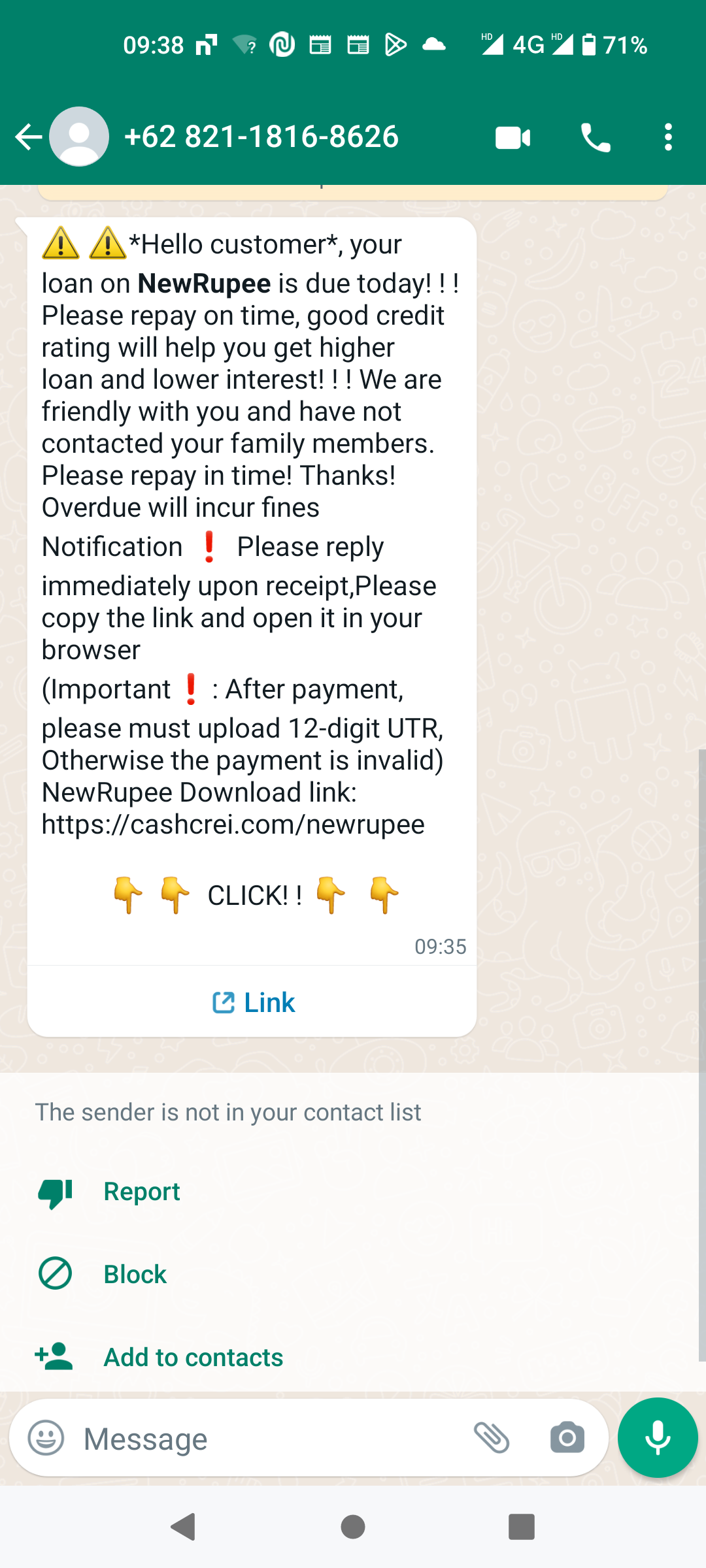 They are using customers contacts To defame and get the money which we didn’t get as loan. They use new dummy whatsapp number