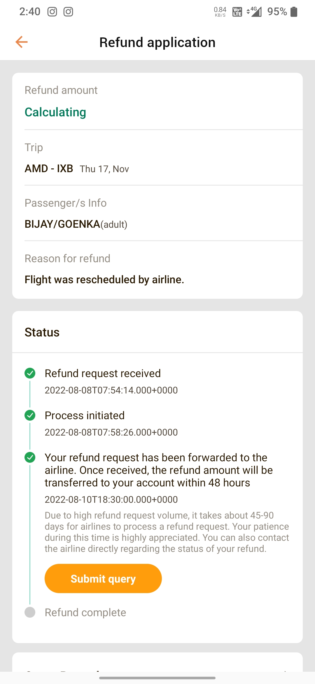 I had booked 2 tickets from Bagdogra to Ahmedabad via New Delhi for 4th Aug, 2022 through HappyEasyGo. Spicejet rescheduled it for more than 24 hours. That’s why all the round trip tickets were cancelled and refunded fully by spicejet. HappyEasyGo asked me to wait for maximum period of 90 days after which I’ll receive the amount. Now they aren’t receiving phone calls and not replying to mail. Intent to defraud the customers and mental harassment.