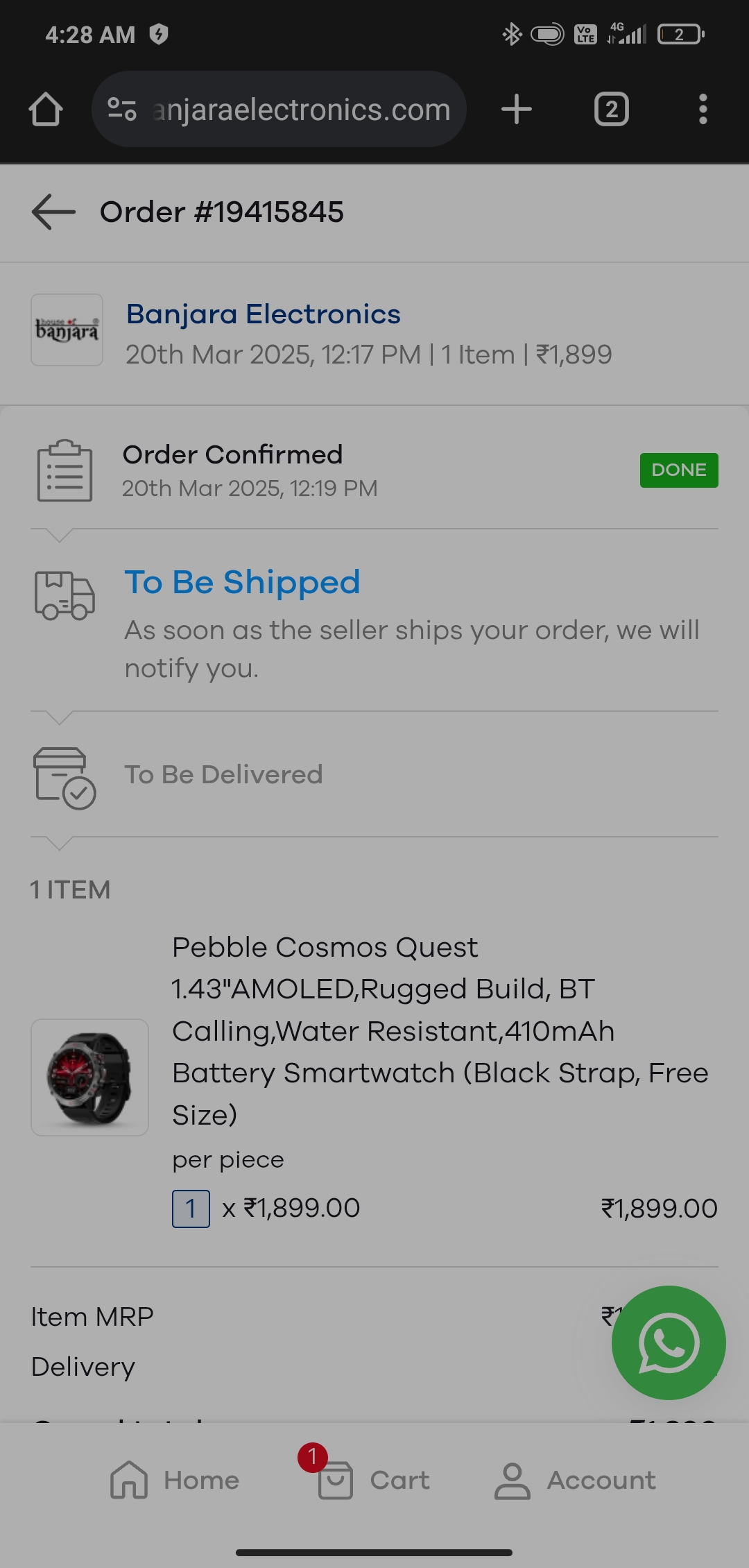 I ordered a pebble smart watch. I ordered and paid but after the payment it’s too long that no one is responding. I massaged on insta to the house of Banjara but nothing happened