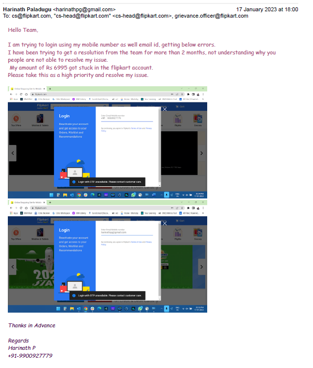 I am trying to login using my mobile number as well email id, getting errors as in attachment.