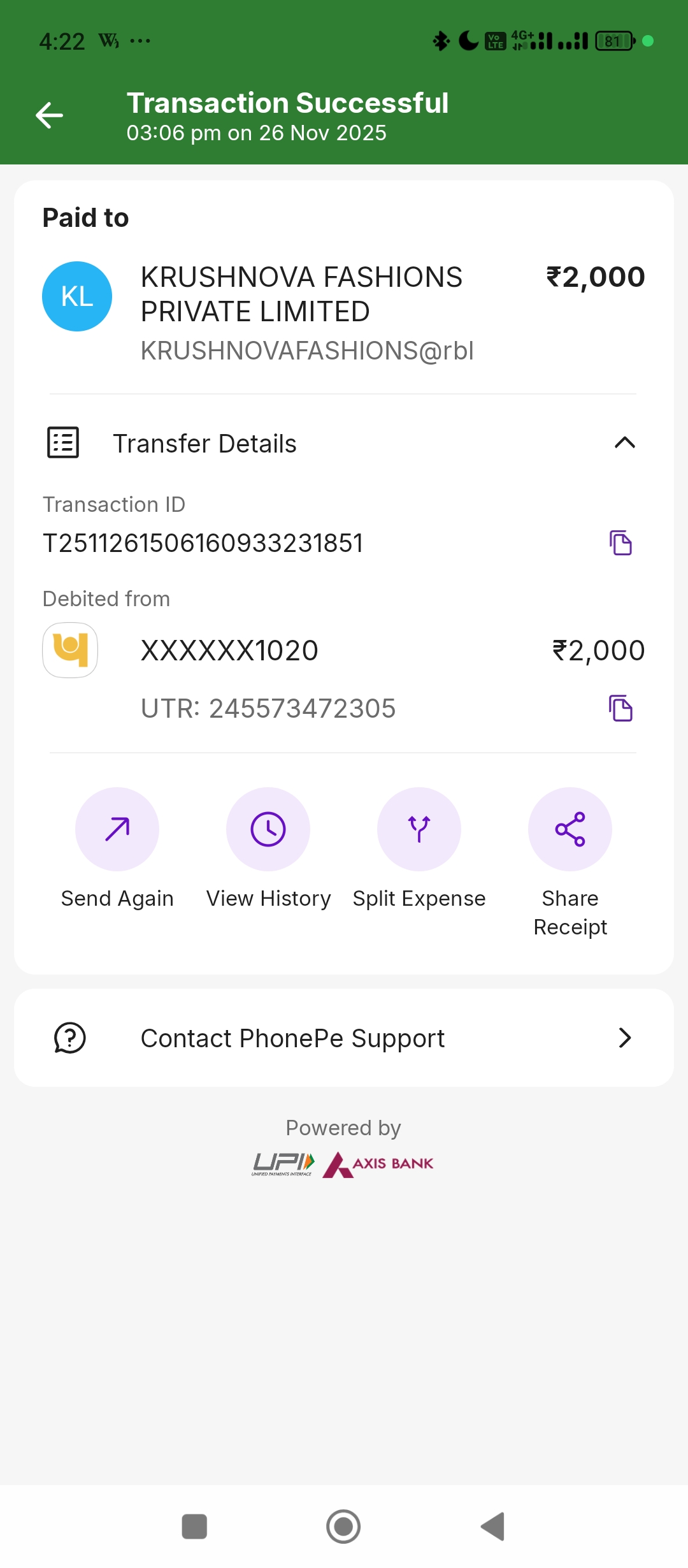 Hii sir I will be paying this payment bt not resolved and update this