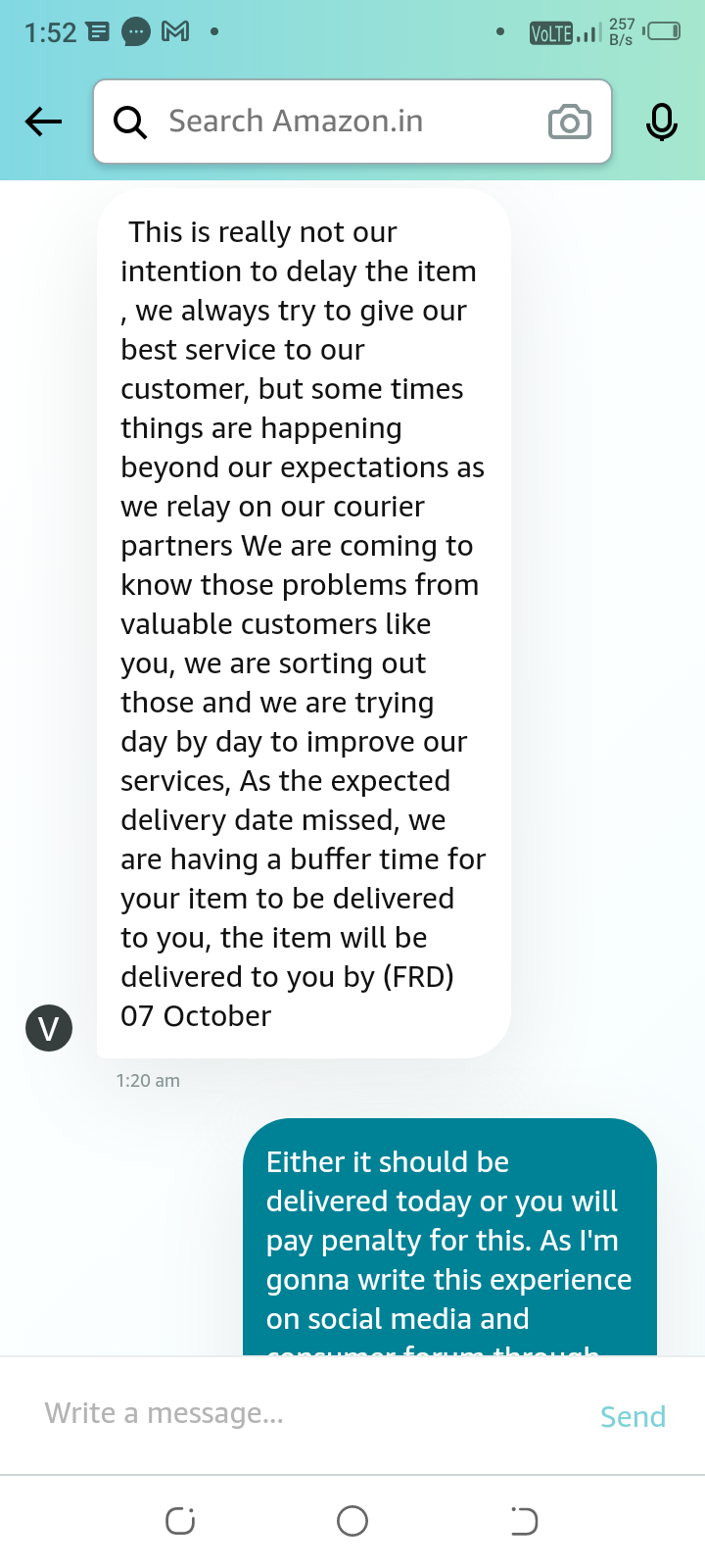 I ordered an item from amazon on 1st Oct.21 on which it was showing delivery date of 2nd Oct.21 but neither amazon delivered the item as per delivery date nor informed about such delay. When I contacted customer care, they told that we may deliver it by 7th Oct. but on 7the that item was of no use to me so I told them to cancel order and they cancelled the order and refunded money. But I am annoyed because I have lost my special occasion due to this delay by amazon and due to which I refused the delayed delivery. Would you talk to amazon to pay penalty for this.
