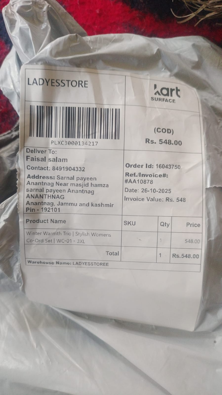 I had not ordered anything from ladyesstore but they had sent it but due to the expectation of multiple orders from different ecommerce websites I was not able to recall at the time of delivery but when I had enquired about the order i had not ordered order id 16043750