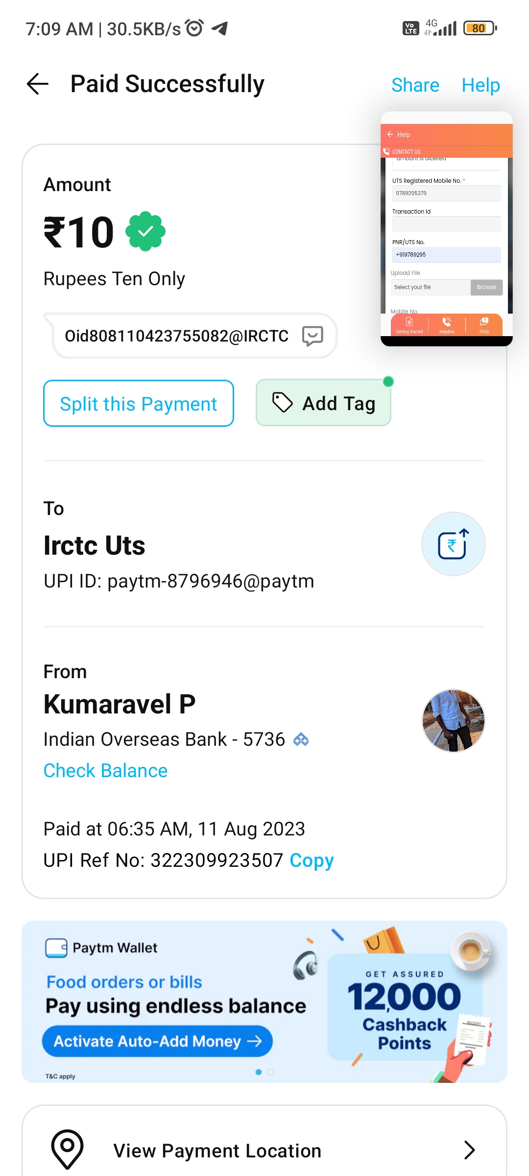 I’m booking ticket in UTS app but not show the ticket show menu but amount is dibet in my account please refund my account 10rupes