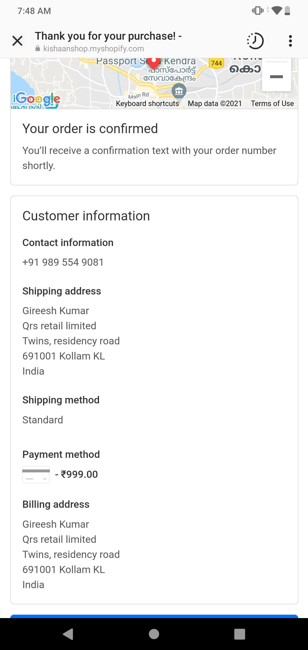 I ordered one product from (kishaanshop.myshopify.com) on 01/09/2021.In this site mentioned the product will received in one week. I get the order conformation and I paid Rs.999.00 through online, currently the site is not working and I not received the product till yet.