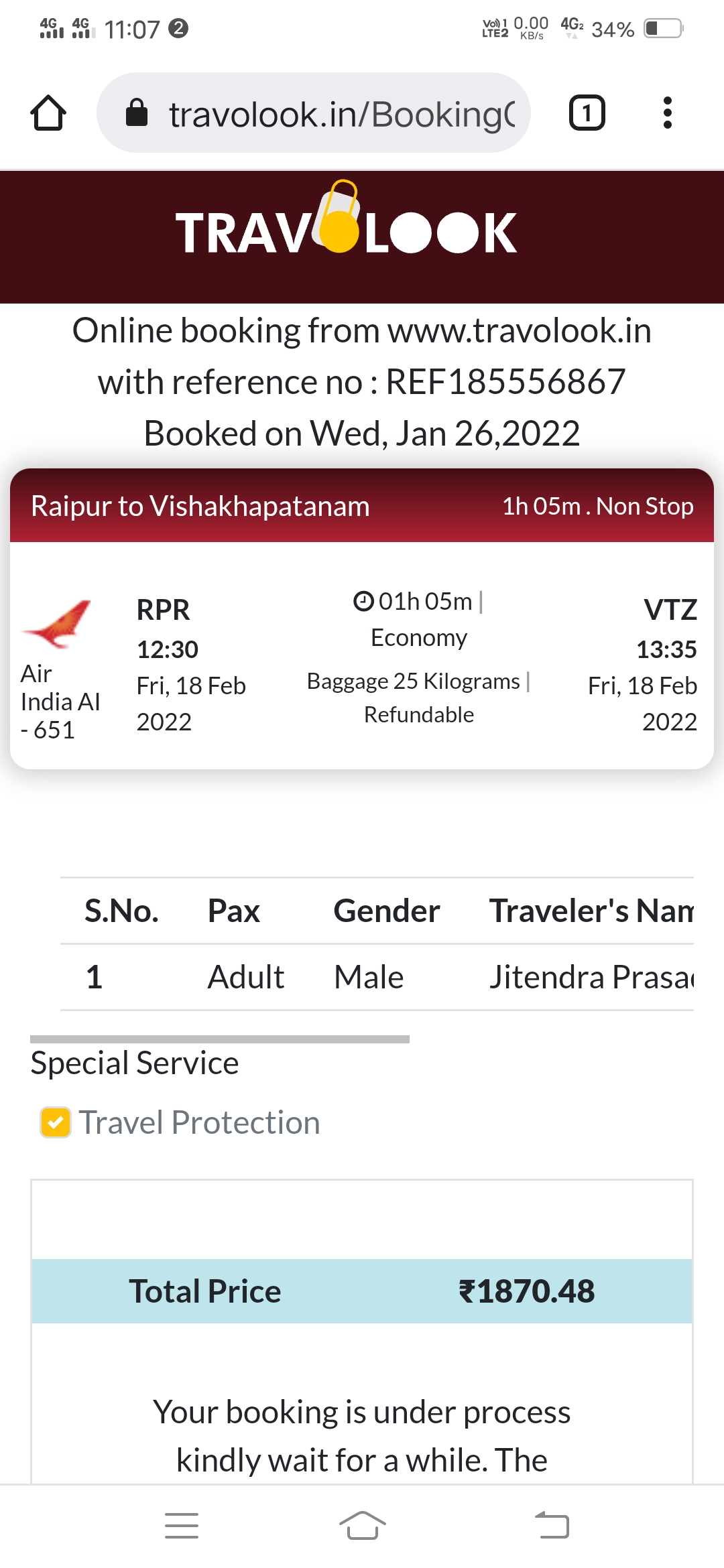 My air ticket is company travolook site date 23.01.2022 REf no.-REF763358120 and 26.01.2022 REF.no-REF185556867