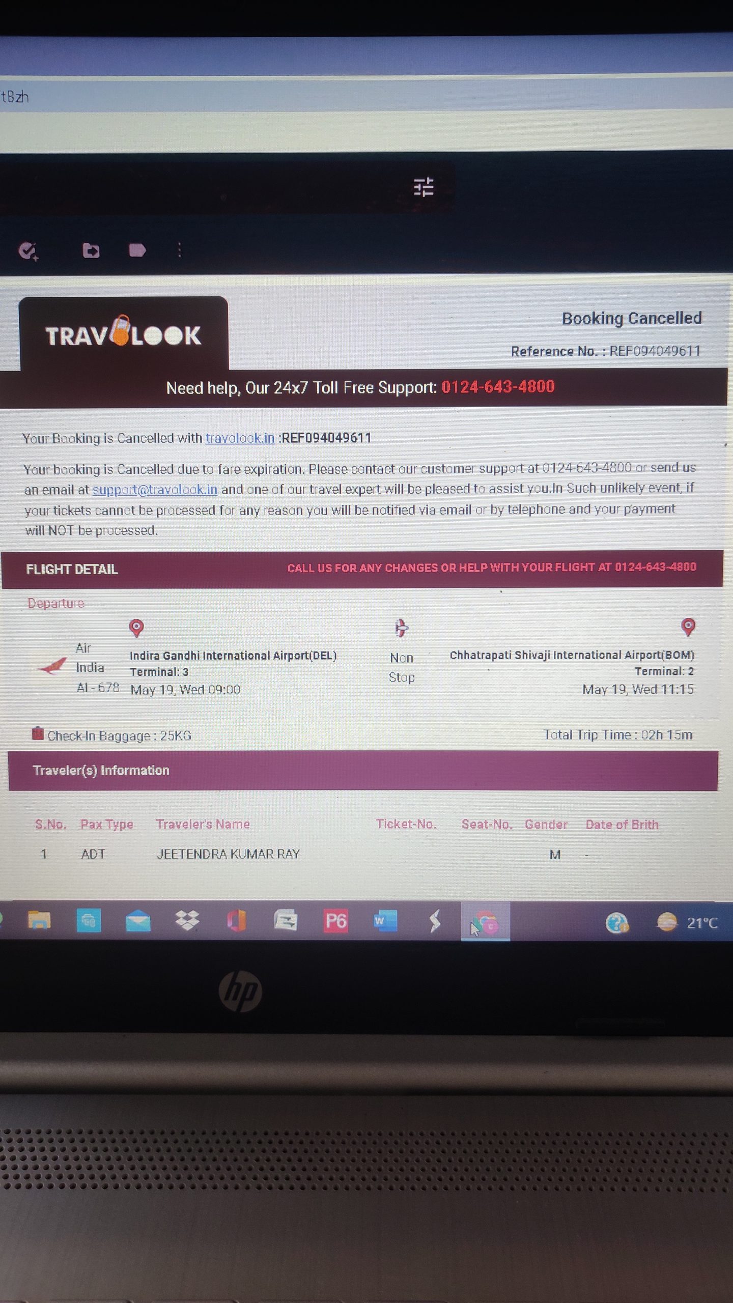 This is regarding my booking reference number : REF094049611 Booking date 18 May 2021.Almost 9 Months