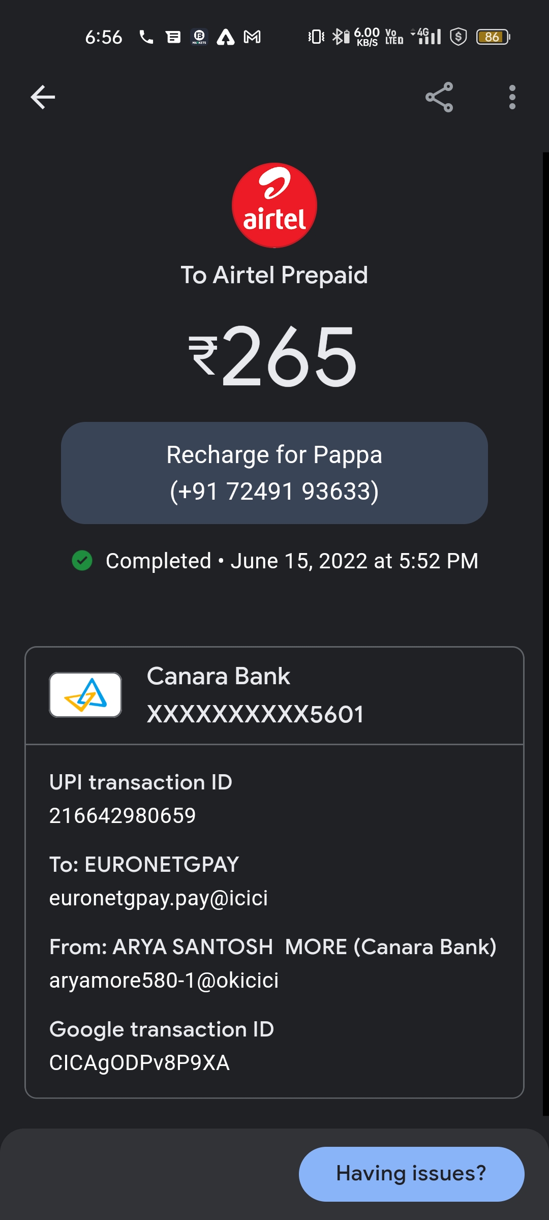7249193633 was my vi number but while recharging it from gpay it shown Airtel operator.but I did repeat recharge which was shown in my history of gpay.i didn’t get any recharge so I had chat with gpay customer executive they said please ask Airtel operator for this query they will resolve it. please try to reverse the recharge made by me I need full repayment.thanks