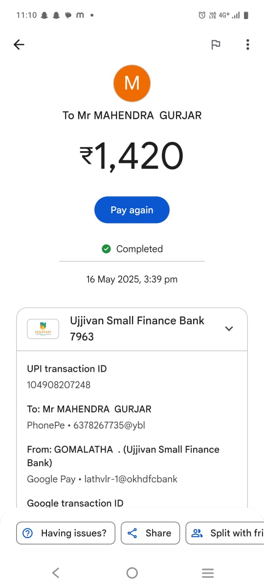It was an online job. I was applied a part-time job to earn more money. First they asked recharge just Rs. 100 they gave some task to complete then i recharged Rs. 100 and i completed the task they return the money Rs.158 again they asking recharge 500 and you will get more profit and i was trying same. afterthat they asking more amount to recharge i paid full amount from my account but i not complete the task. I complained my issues i don’t have money to recharge. but they didn’t consider my issues again they telling complete your full task then withdraw your money.
