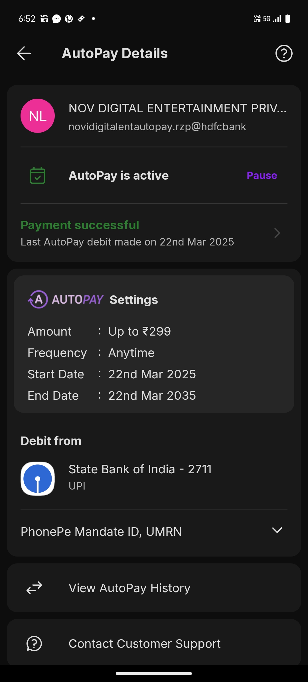 Nov digital entertainment private limited, this is showing Autopay but I didn’t subscribe this but still showing Autopay in my account
