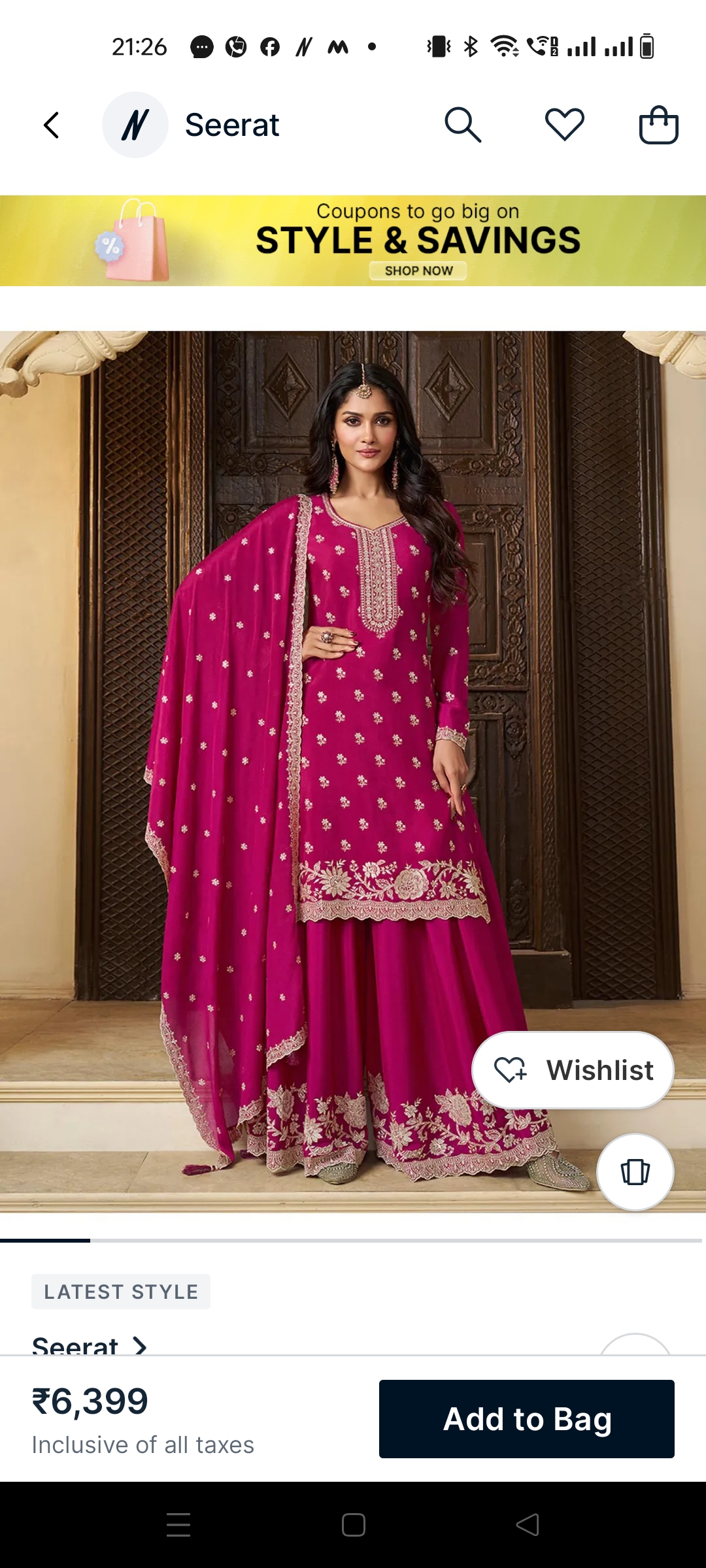 Uploaded the product I have received for 6399 which is a fraud … Such brand like nykaa fashion started fooling public now.pictures attached of what I have ordered in pink and what I got in green