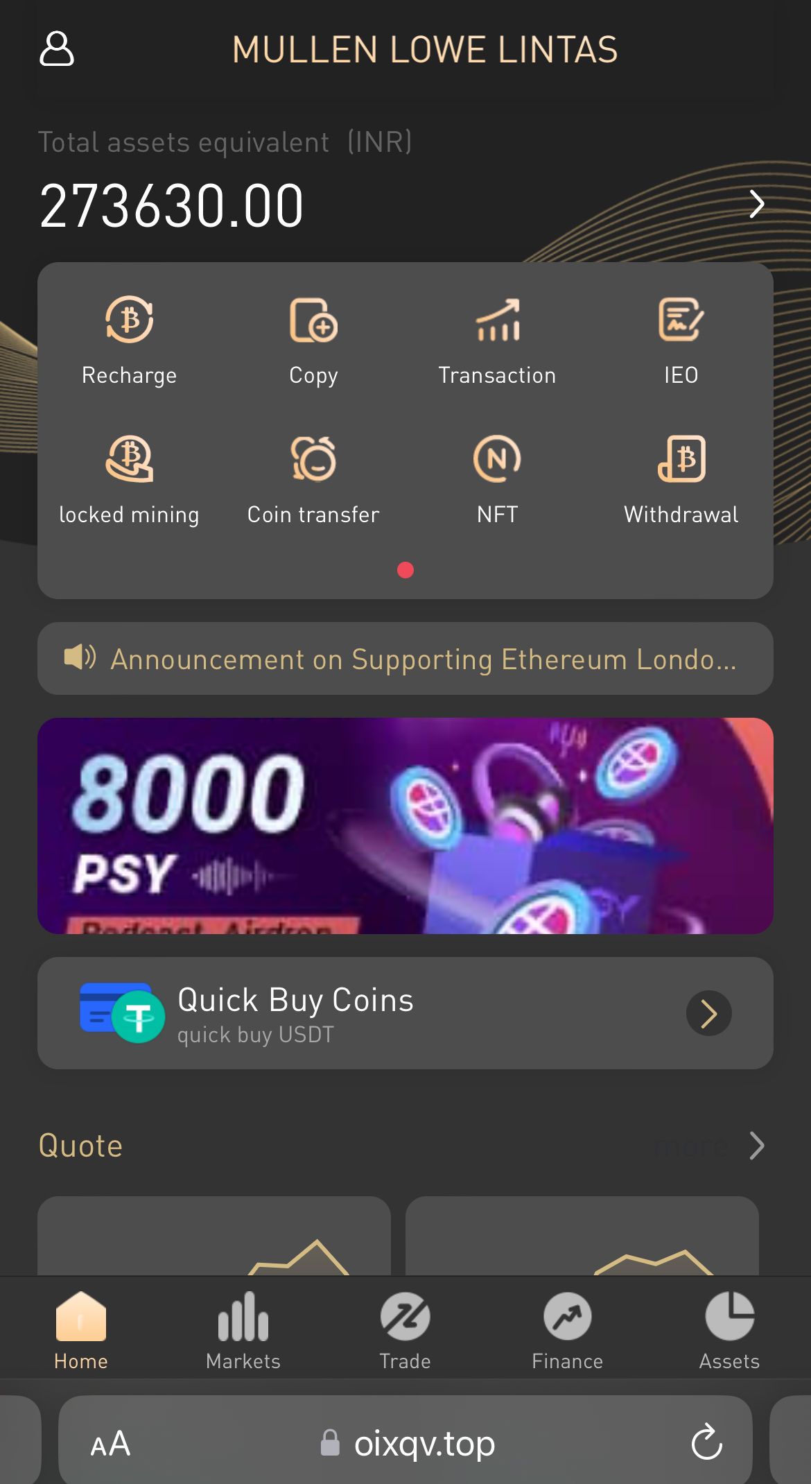 They contracted me to offer a part-time job. They started giving YouTube channel links and asked me to subscribe. They paid me ₹50 for each subscription. Later the asked me to do a welfare task which leads me to website https://oixqv.top for trading Bitcoin. They asked me to invest 2k and i will get 2.8 k. As they said, i received 2.8k. Later asked me to to invest 5k to get 6k back. I have paid the same and i invested overall 2.5 lakh INR but again they are asking deposit 5 Lakh and i have denied. Now they are denying to process the refund..