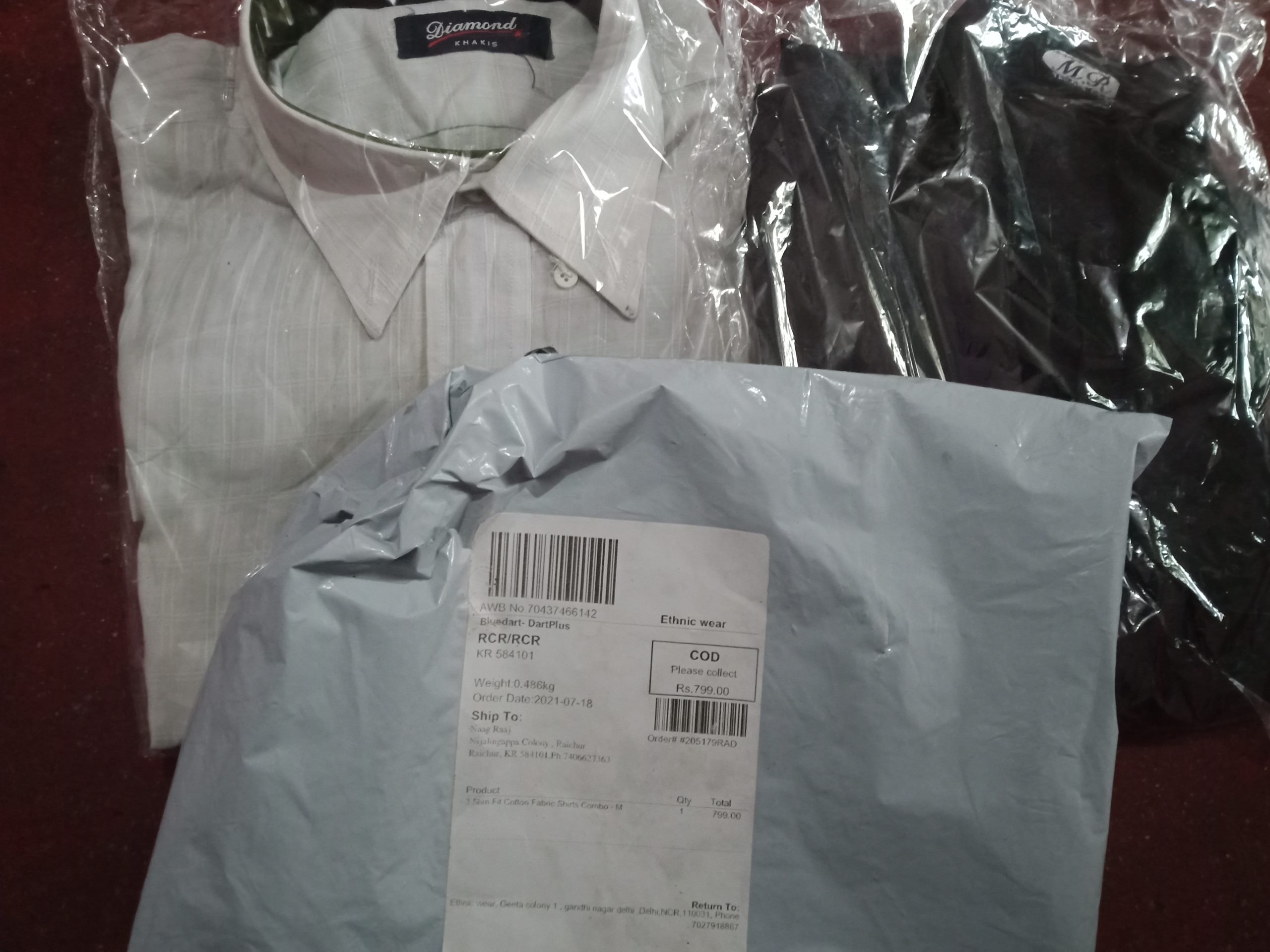 radiff.com has given buy 1 shirt and get 2 free only 799/-so I am ordering that shirts cash on delivery then after 3 days delivery boy came and geven that shirts and he collect money and left then I am opened that cover,shocking they sent me using another persons two shirts then knowing they are Fraud me,,