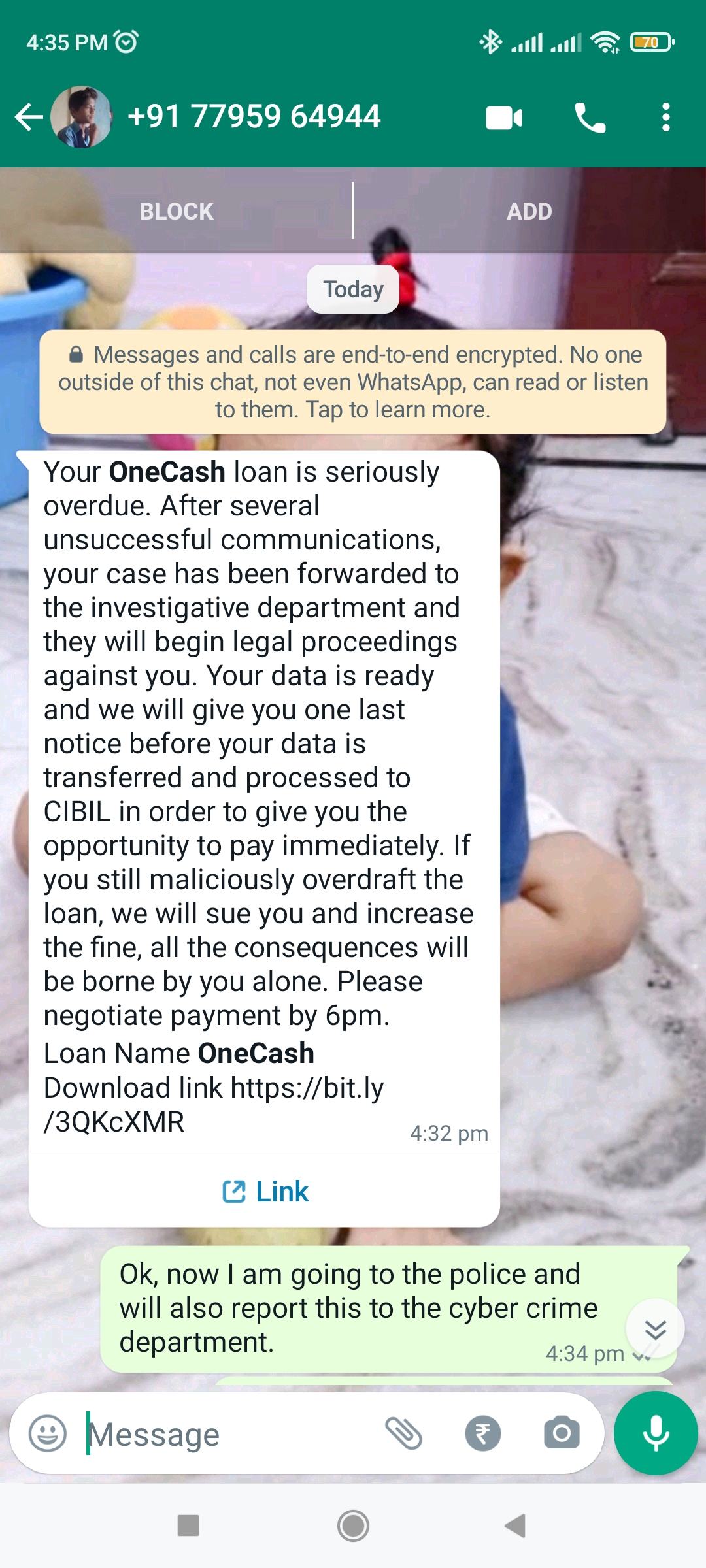 I have been receiving threat messages from One Cash asking to pay loan amount back, however I haven’t taken any loan from one cash app. There are threatening to report it to CIBIL and also to my contacts. Please take strict action against such frauds.