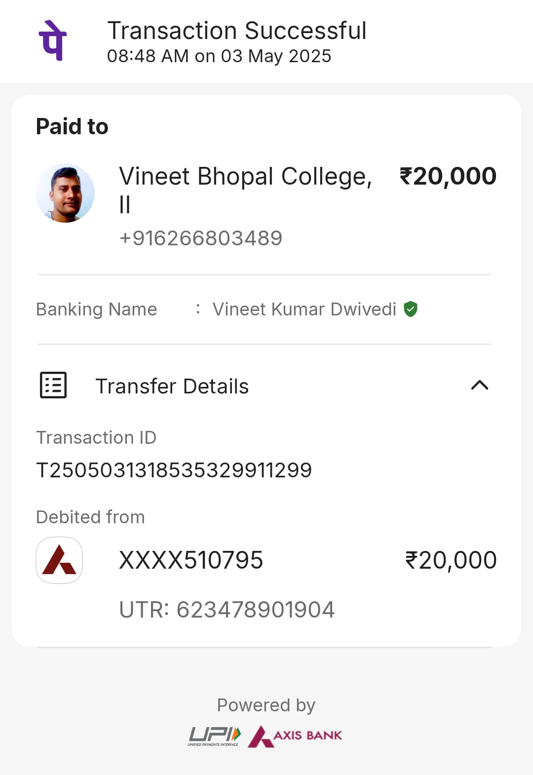 I given 20000 rupees to Mr. Vinit kumar dwivedi.But he not returned me