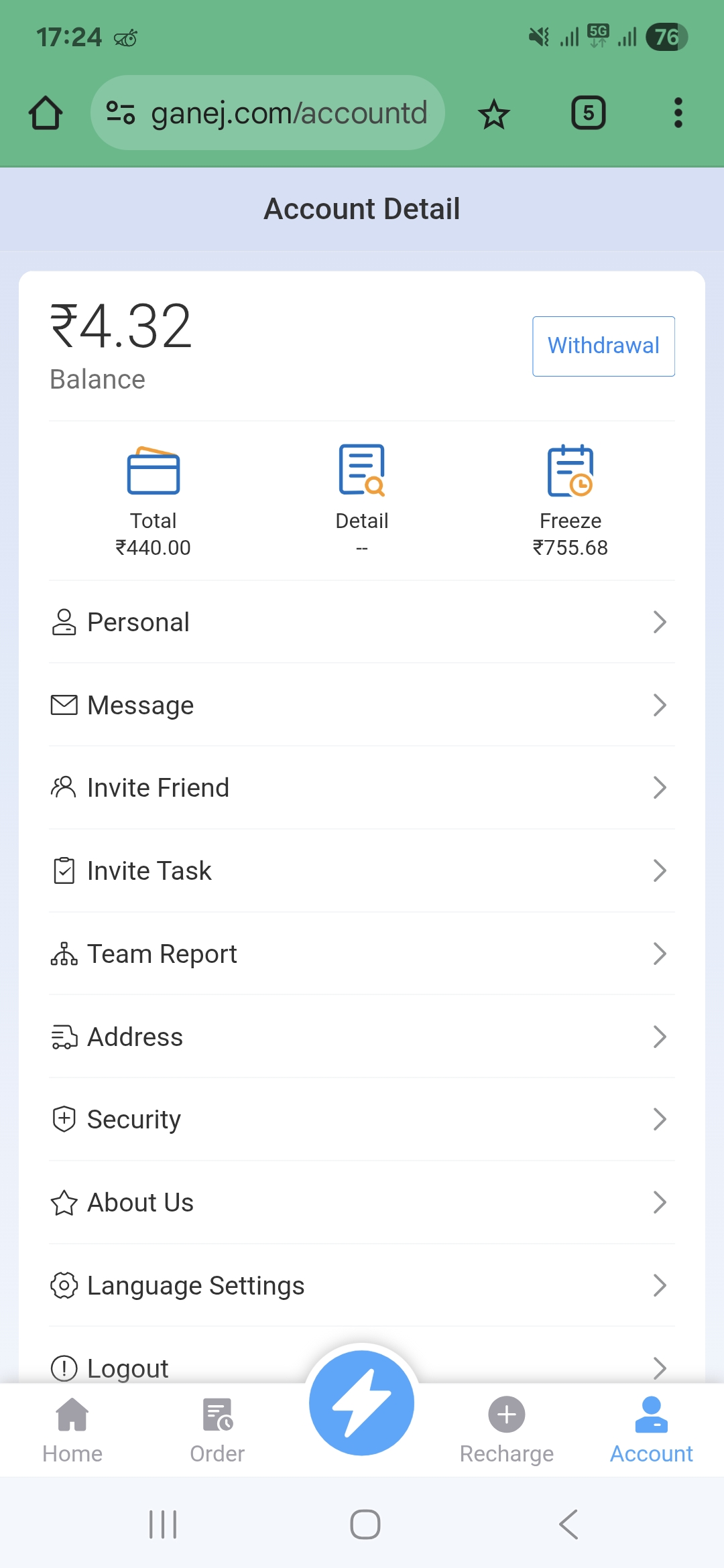 Received msg from +880 1954-852474 this number and they share https://ganej.com/index site for register and earn money. I registered and invest 100rs first for activate my account.