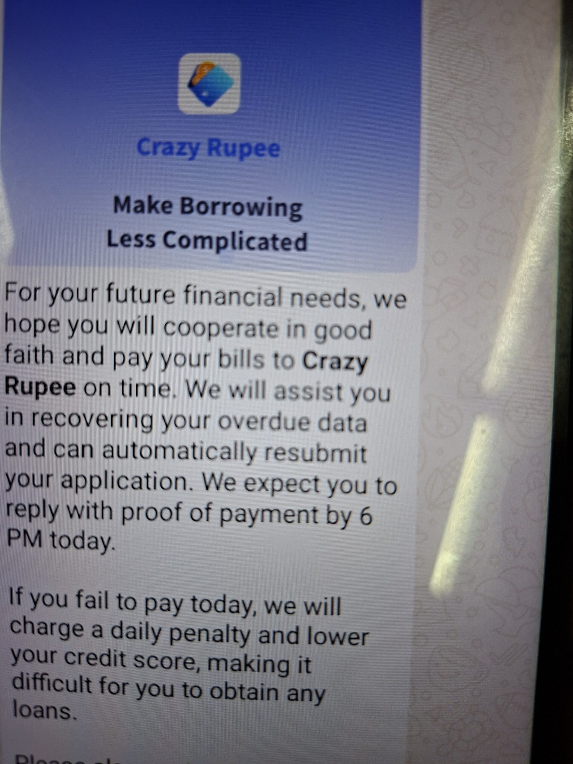 I hv not taken loan from Crazy loan rupee they are forcing me to pay back the Loan