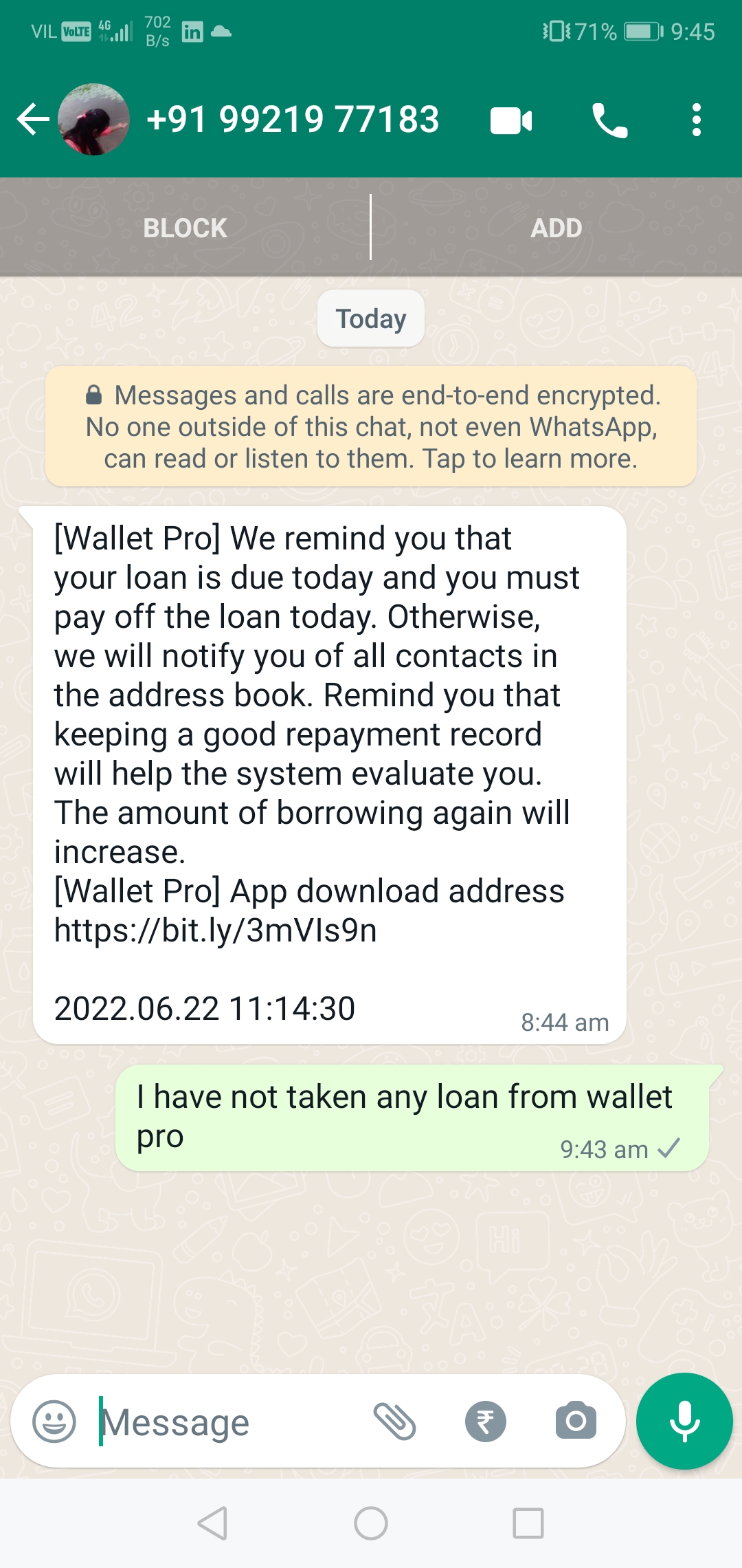 Received a msg asking for repayment of money which I never borrowed. Kindly take necessary actions.