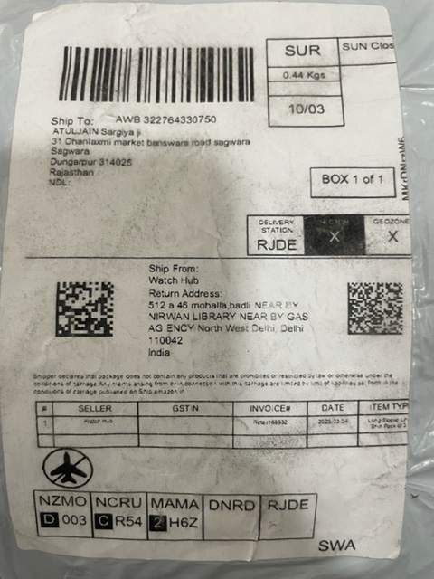 And after receiving the order , i opened it and found out there was 1 old kids size jeans and 1shirts (men) which were fully damaged and was looking like used shirts.