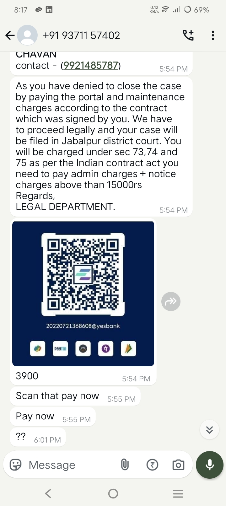 They asked me to register for an online data entry jobs they said reach 85% accuracy. After 12 days submitted the work they sent you did not achieve the target so you have to pay 4000rs or else you have to pay 20,000 and if not police will come and arrest you I said I don’t have that much money but they forced me to pay within 30 minutes or else they will file complaint on me. And they sent a mail threatening me to pay 4000rs