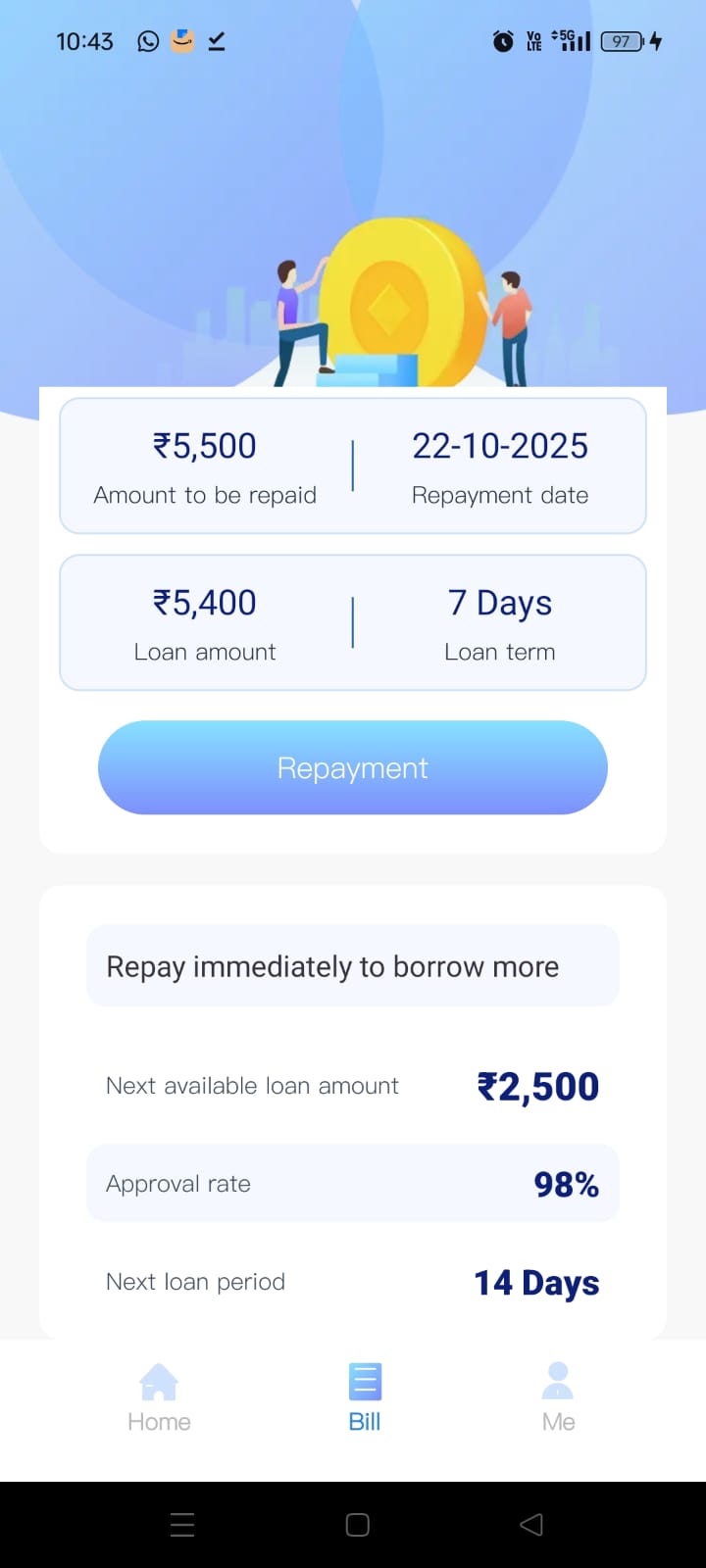 I did not take a loan from Velopay they sent me a whats app msg that im due to pay 5400 rs. Thinking it will create a problem for me i made the payment on the said day 22-10-2025. Next day i get a msg to make payment n when i open the app it shows to pay Rs. 540. Even that i paid. But now everyday the app showing a new amout to pay