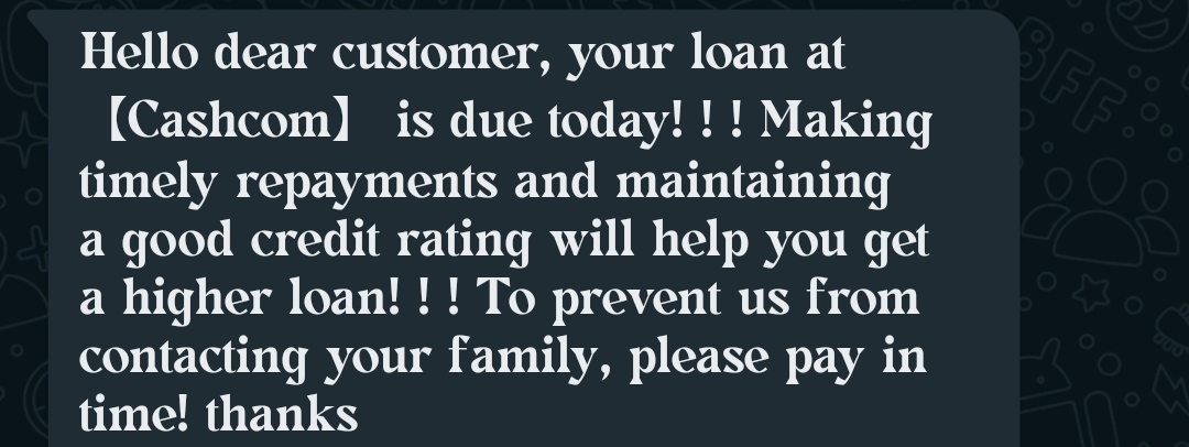 I didnt take a loan from CASHCOM loan app but getting message that your due date is today. please help me sir