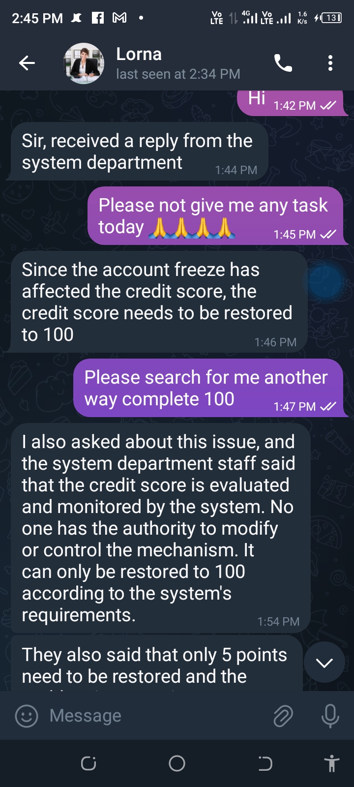I have accept I complete task and click that link.i go telegram and he joined me called front desk.he give me a little task I completed and give me a little amount he give me a money task. I accepted the task and send money after he say a another task complete and give all amount with refund amount .