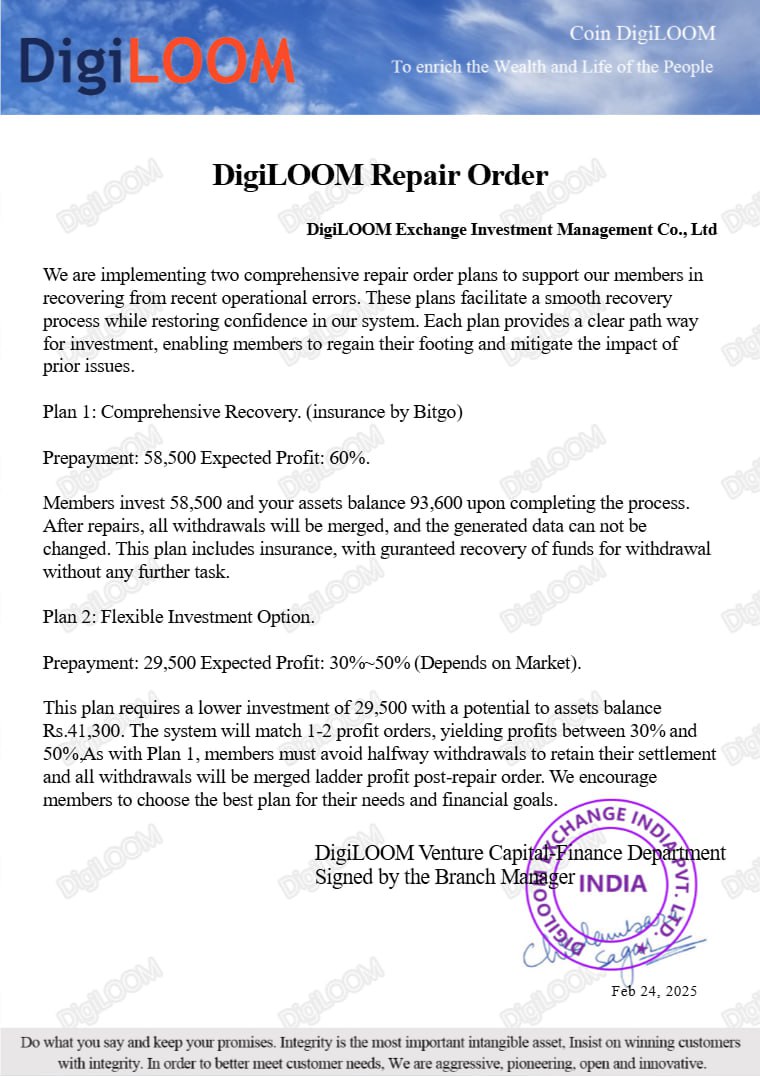 On the 24th february 2025, I had started this digiloom task. At first one guy contacted me on whatsApp and told me to review a hotel on google map. Once I had done that, I was credited 200 on my account. The guy on WhatsApp gave me a link to join telegram and gave me the link of the receptionist who will guide me. I was completely unaware of this company as I had initially thought I would get money by giving ratings. How wrong was I. The receptionist told me to give more ratings then gave me five links. After I finished giving ratings she instructed me to my first task. She gave me the number of a guy named Ankit Mukherjee who was going to he my teacher. This guy gave me Instructions to deposit my money(a sum of ₹1000) to a upi account and then gave me link from which I was asked to buy some crypto. After buying my crypto i made a profit of ₹300 and the full amount of ₹1300 was credited to my account. The second task required 3k which I again paid and was given task to complete which was to buy crypto. This time I had received ₹4600. Next task we were asked to invest 10k and get 19k in return. I told them I had no funds but the kept insisting till I eventually said okay. So I put my 10k in the account and we were redirected to a group of 4 people where in the teacher Ankit gave us a task to complete. This is where everything took turn. The instructor gave such vague instructions for eg: talking to someone in sign language and expecting them to understand everything you say. I made one mistake and they told me everything has to shut down because of that! Now they’re asking us to pay ₹29500 to repair the damage. I still believe it and paid that amount. Again! They asked us to pay another ₹98500 to repair it. At this point I was out of cash and borrowed from friends. I just wanted to get my money and then never involve myself in this thing again. After paying 98.5k what happened was they redirected me to a digiloom refund manager who had such a bad temper. She also gave me such vague instructions that I was told I made another mistake. After this incident I had a huge argument with the manager and I stopped communicating with all of them.