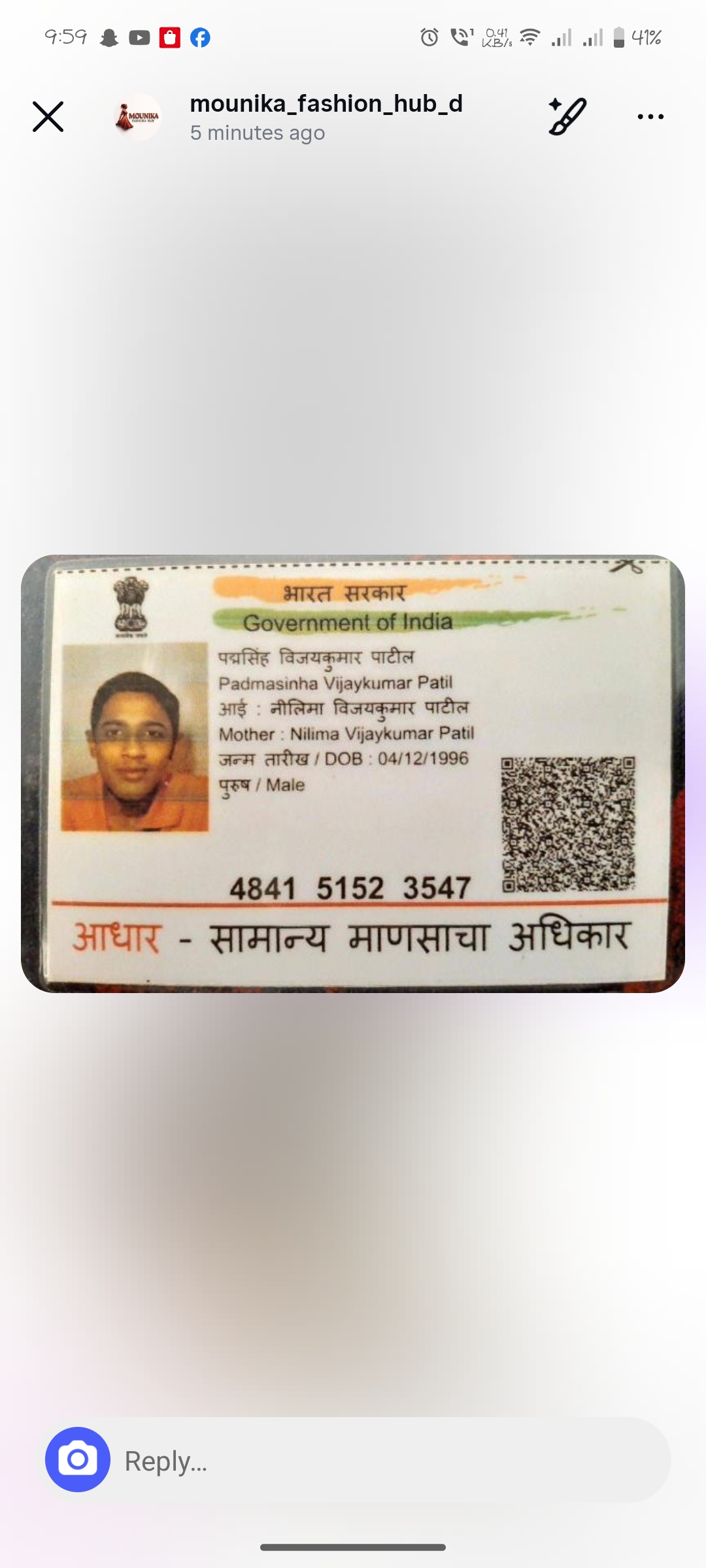 I have approached Mounica_fashion_hub_d for the online dress, has told me to pay dress amount first which cost is around 550 and then told me to pay 799 delivery charges and now telling me to pay 1000 gst charges which will be refunded so unknowingly I paid 550 dress amt and 799 delivery charges through gpay with the QR code which am attaching, so in doubt I asked them their contact details so they sent me the attached aadhar card and pan card, with that details I got to know that it’s fake, please help before any big scam going to happen to me. Thanks!