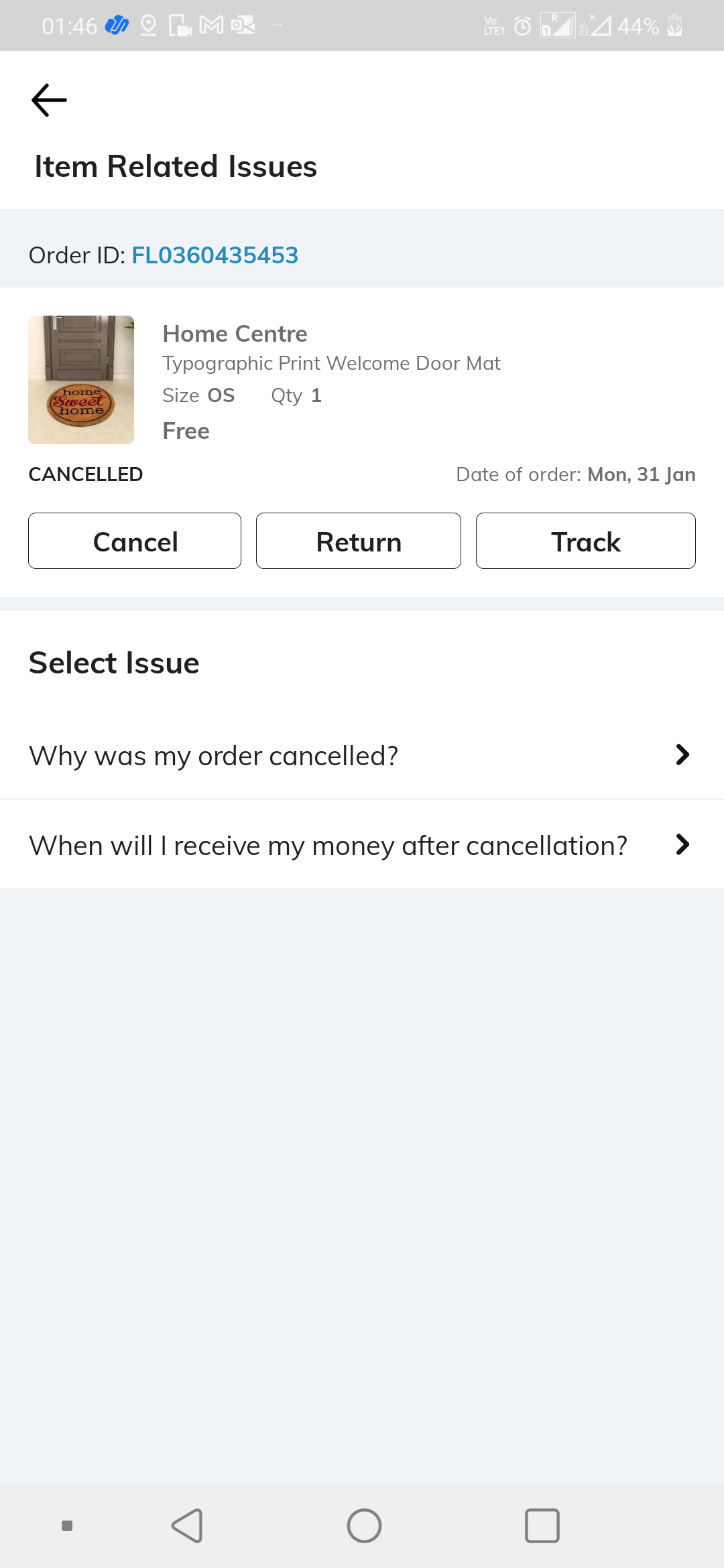 I have ordered product Order No- FL0360435453 from Ajio on Feb-1-2022 and got confirmation upon booking. Ajio cancelled all of them without any intimation. Same thing happened with other 4 products which were booked on same day. Kindly take action on such irresponsible shopping site.