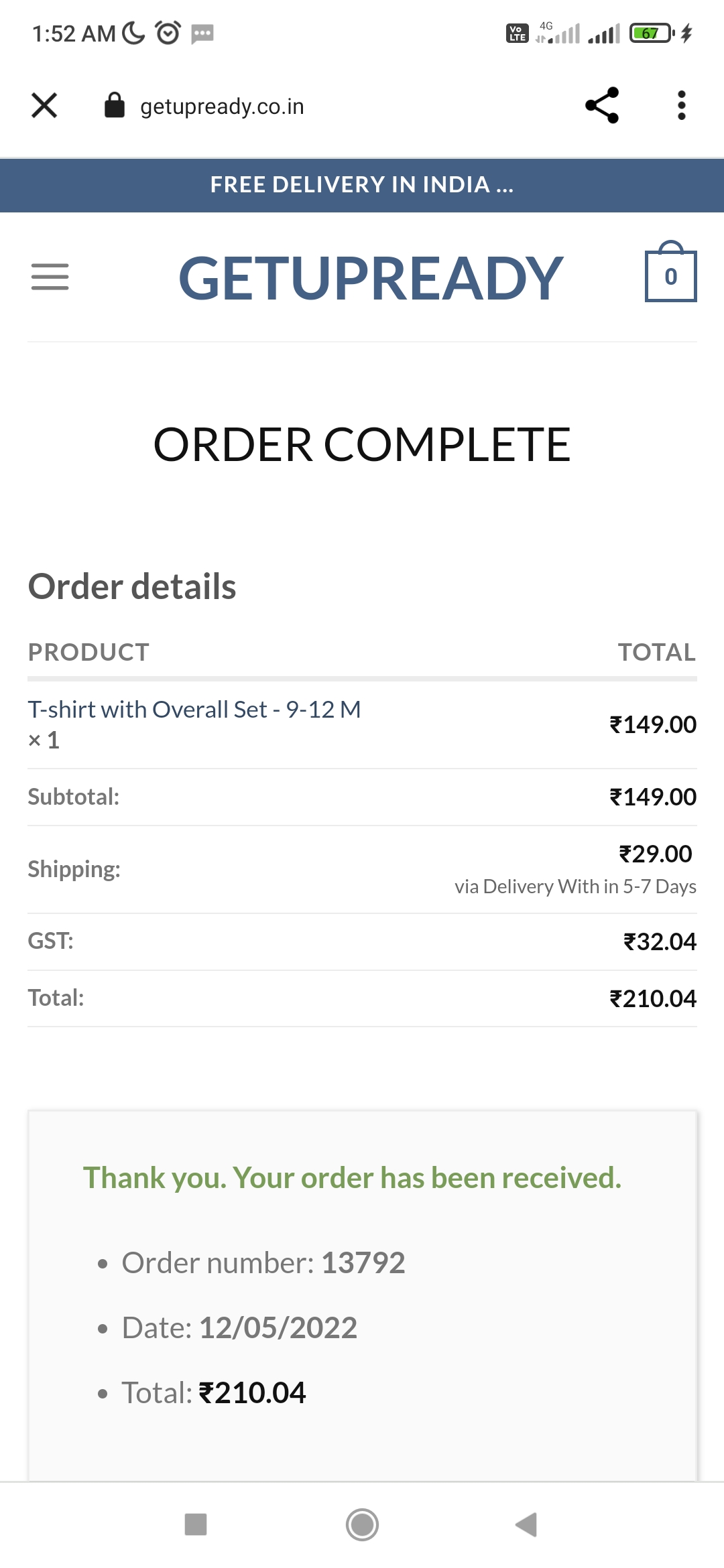 I have order T-shirt with overall set on 12 May 2022 but it’s not delivered yet even though they claimed that item will get delivered in 5-7 days.