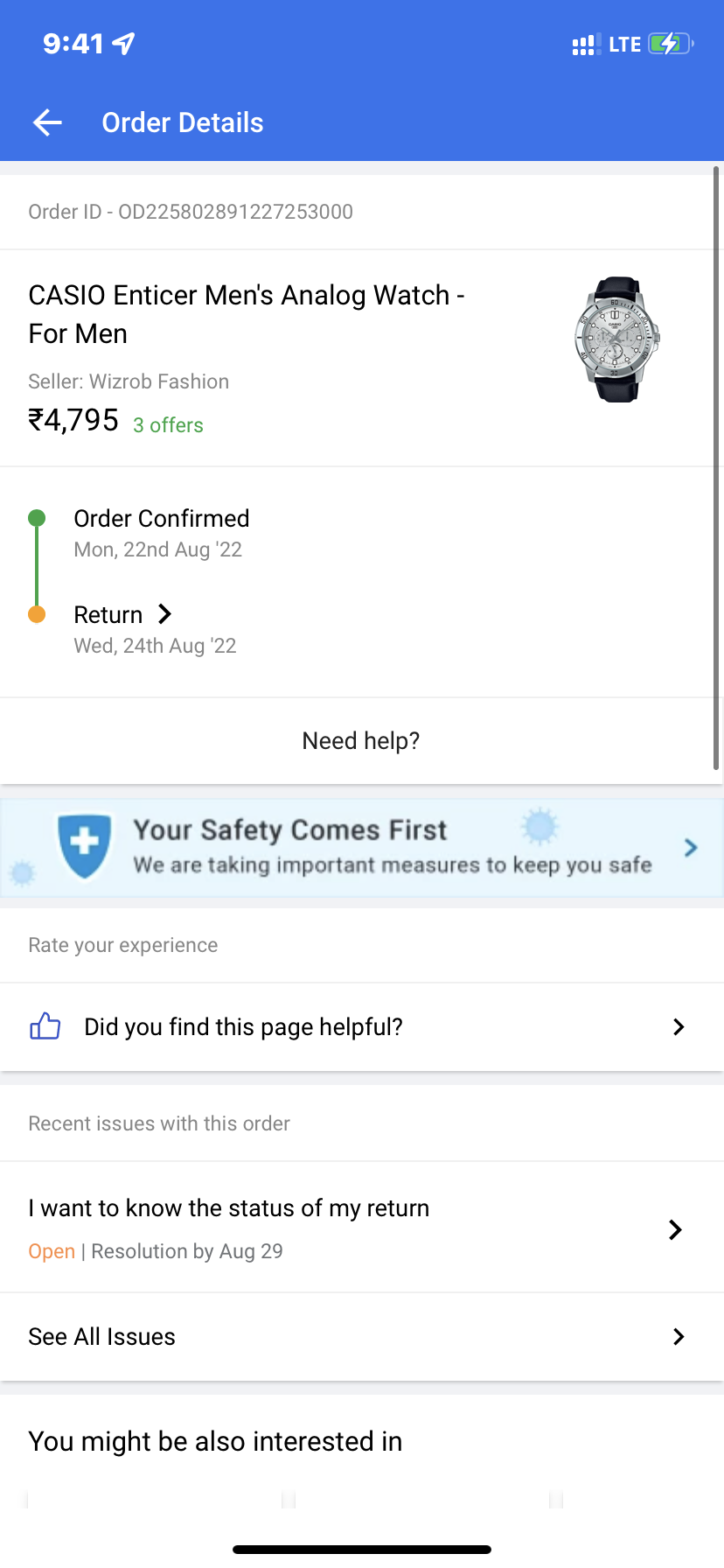 I ordered this product on 22nd august and it was supposed to deliver on 25th august. But it came early that is 24th aug. I wanted to cancel the product but there was no option to cancel the order. Delivery boy came and he was about to give me the product but i was not getting the otp as it was a prepaid order, so he took back the product and marked it undelivered… i wanted to cancel the order but There was a return option, by mistakenly i clicked that, then i realised there is no product with me so i cancelled the return request. Its been almost 3 days they are just giving me reasons. They have the product with them as well as my money. They are not refunding my money.