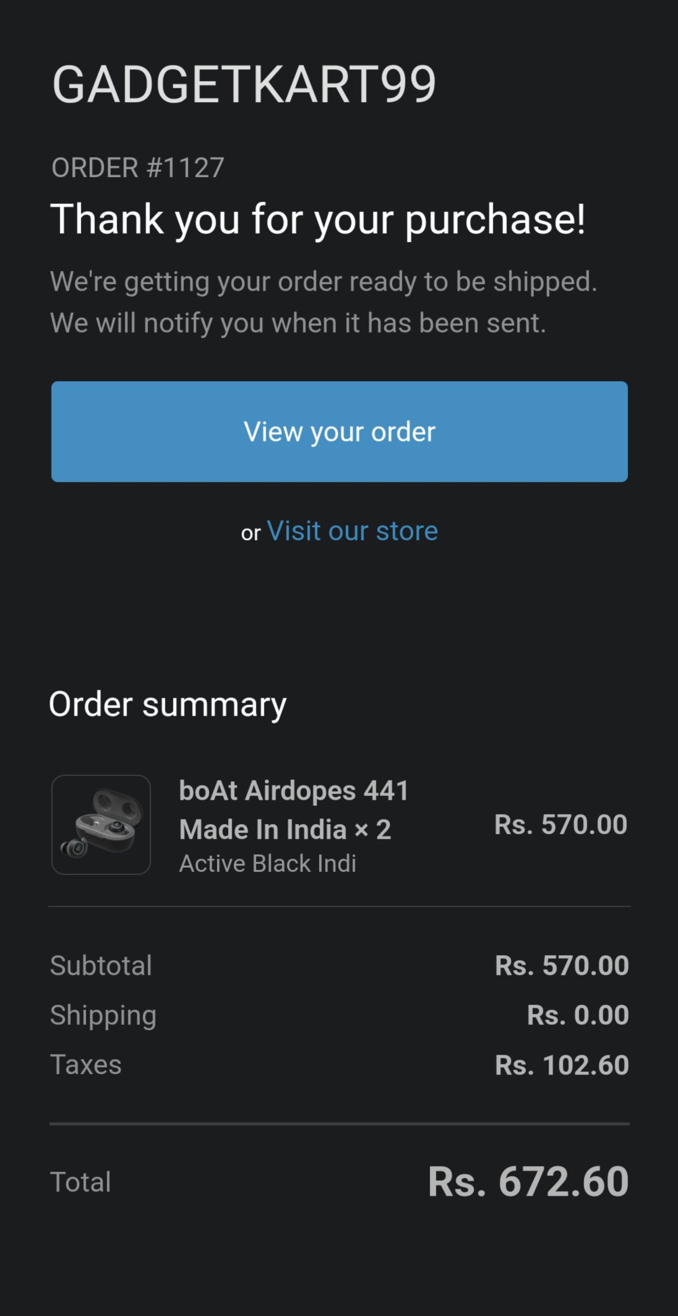 I HAVE BOOKED TWO BOAT AIRDOPES 441 2 pieces VALUE RS.672.60,ON 06-feb-2023 https://gadgetkart99.myshopify.com/, THIS WEBSITE I FOUND ON YOUTUBE AD.
