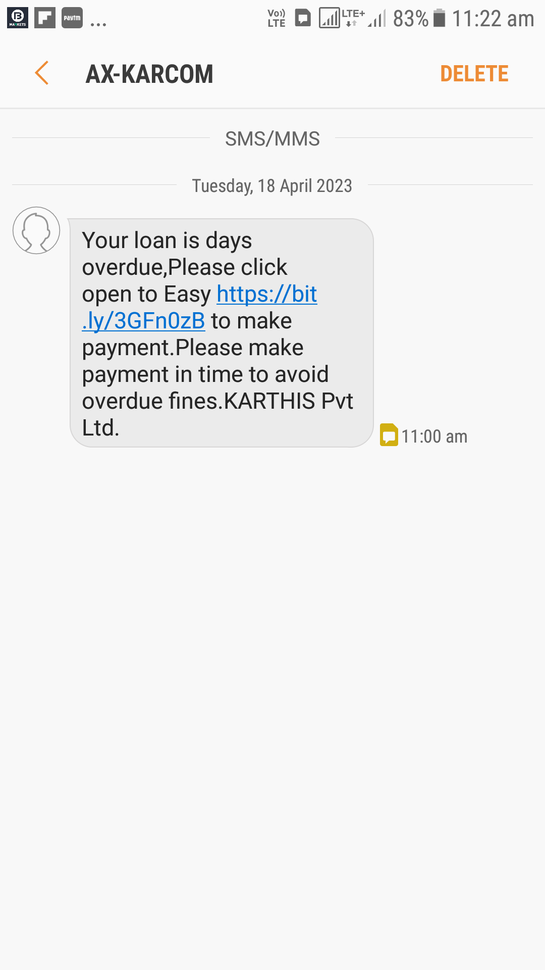 Paid loan message but loan not applied message. Short time unlimited message for karthis pvt ltd