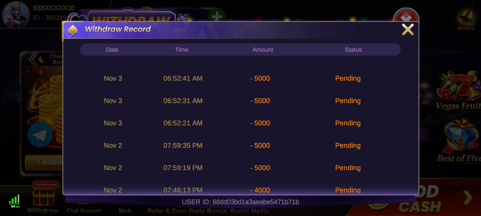 1. Recharge mat krna koi bhi .. bahut issue aata h . Paise mat jate hai account se but game me nahi aate hai .. same aise hi withdrawal me issue aata hai .