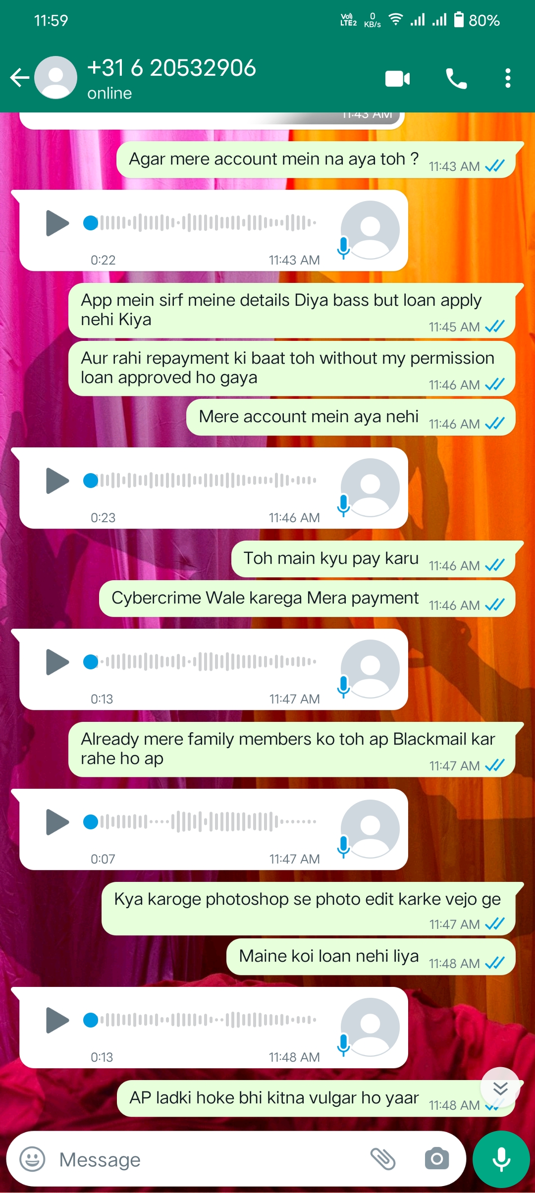 Papa money they are agreed to the loan without my consent and now they are demanding money and sending vulgar photo and my details to my contacts and blackmailing me .