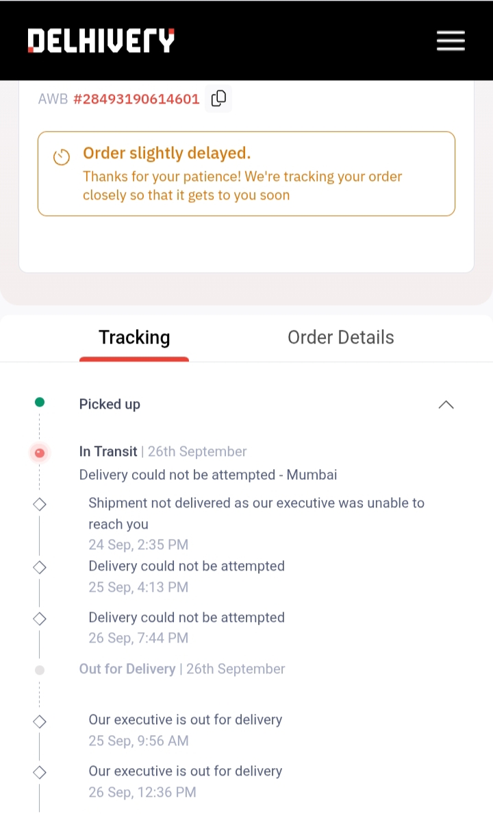 Package not received from last 7 days