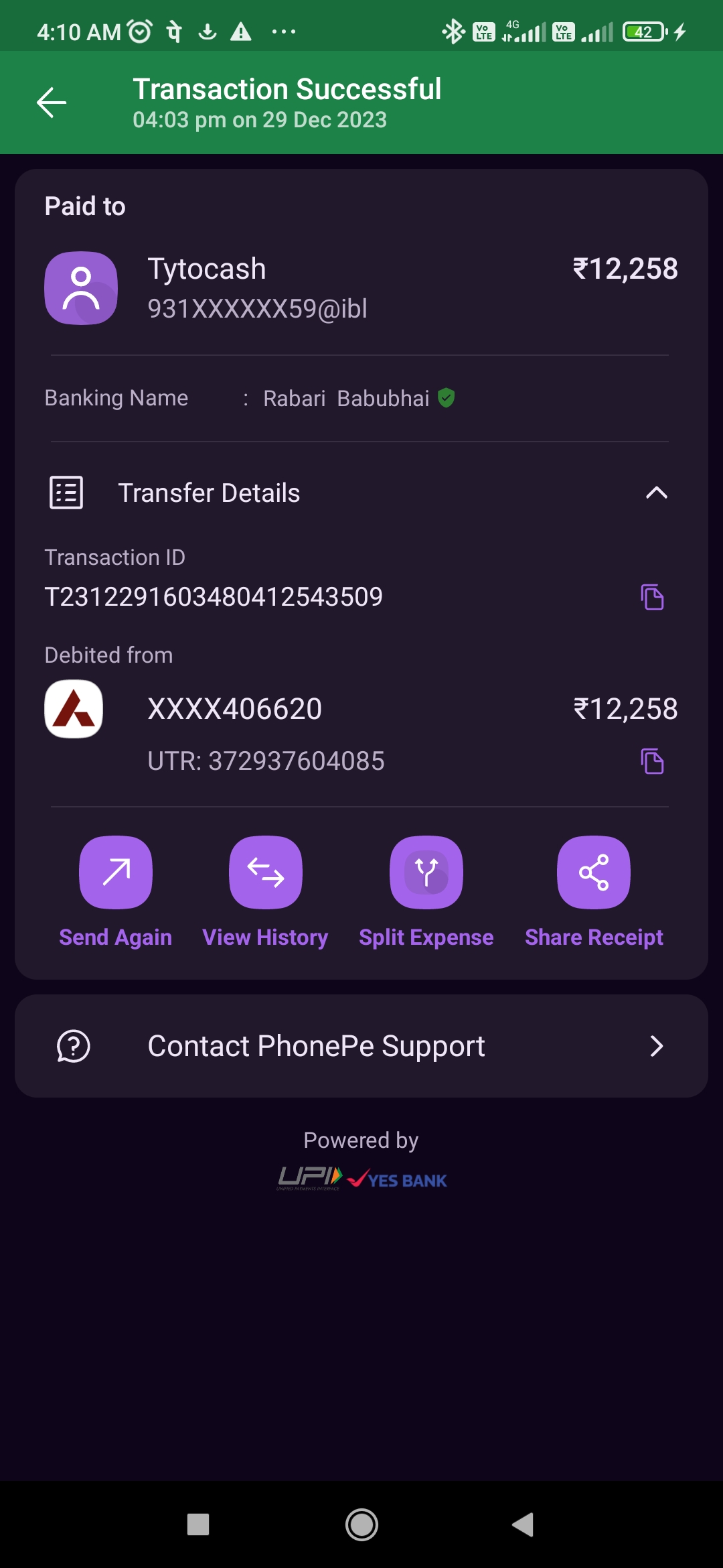 My loan amount paid tytocash 102258 clear. date 29/12/2023 but system show mere cibil score down not upadte my loan clear.