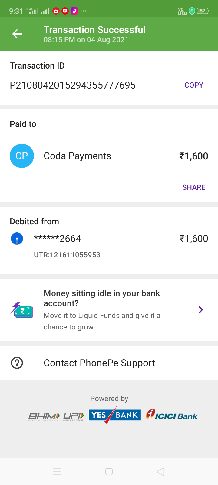 On 4th August my balance was deducted towards “coda payments” without OTP and any kind of security features &my attention and continuously it was deducted 1600,400,400,so please do the needful in this case sir.