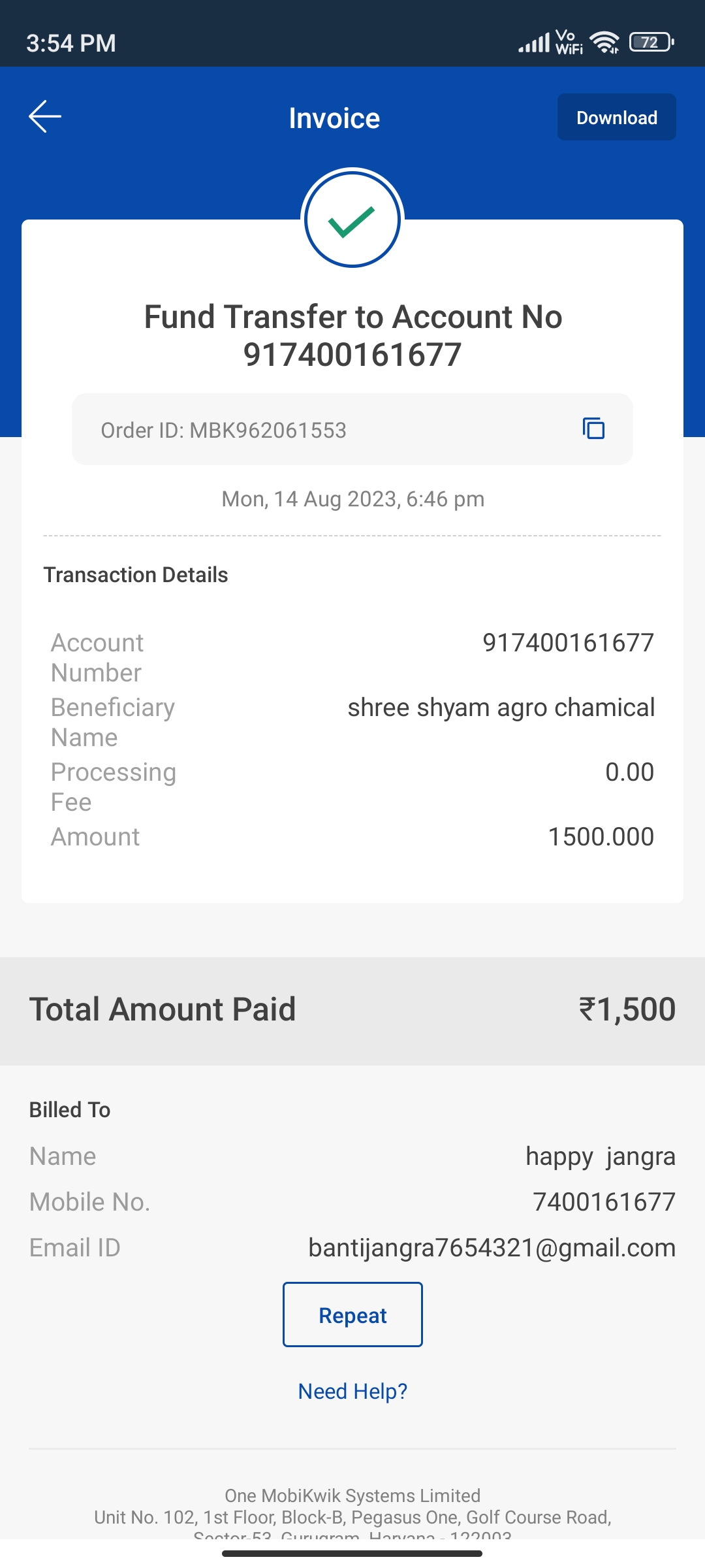 | Name(s) of companies complained against | mobkiwik |