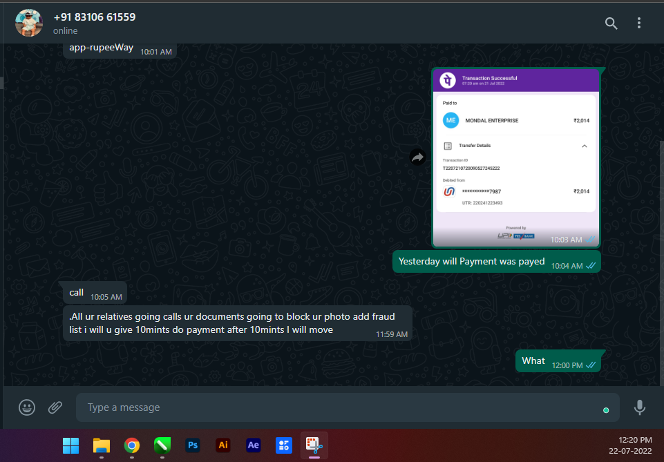or payment ho chuka fir bhi muje pare sankar rahe kal se