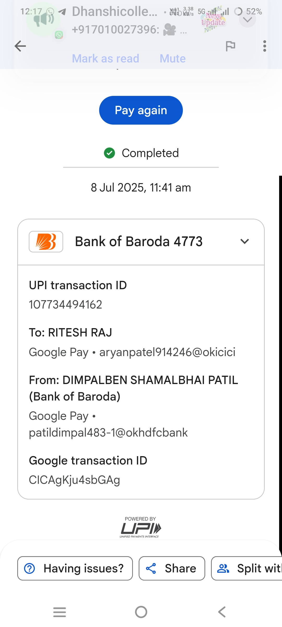 Galti se payment ho gya hai upi transaction se please vapse chiye hame upar Jo upi hai uspe esa Kiya hai to please